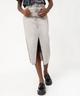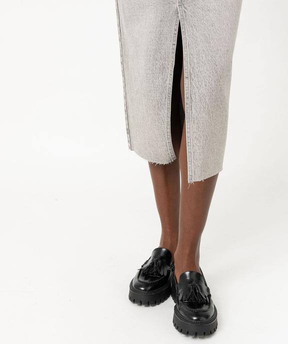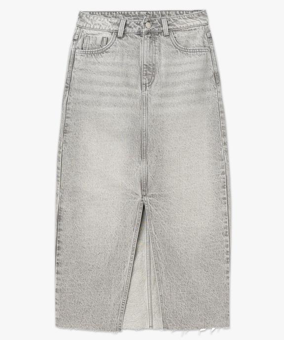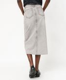 La jupe en jean se décline en version longue largement fendue sur l’avant. Elle affiche un coloris légèrement délavé et des finitions bord-francs dans le bas qui lui confèrent un look décontracté. Cette jupe femme respecte les codes du denim et affiche des doubles surpiqûres, trois poches sur l’avant, deux poches plaquées au dos et une fermeture par zip et bouton. Une jupe longue fendue à porter avec un sweat et des baskets à plateforme. Passants pour ceinture.