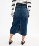Cette jupe en jean midi revisite un classique avec originalité. Sa coupe ajustée à la taille qui s'élargit vers le bas combinée à la fente au dos et à la matière stretch crée une silhouette féminine et tendance tout en offrant un excellent confort à la marche. La jupe femme affiche des découpes fantaisie qui lui apportent une note unique. Fidèle aux codes du denim, la jupe en jean conserve les détails emblématiques comme les poches et les coutures apparentes.