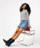 La mini jupe en jean envahit à nouveau le dressing des femmes ! Inspiration rétro pour ce chouette modèle coupe trapèze doté de grandes poches plaquées devant et d'un gros bouton décoré en relief. Un charme fou complété par une confection au top du confort. En effet, la jupe pour femme est fabriqué en coton stretch extensible. Une paire de baskets et hop, vous ne la quitterez plus !