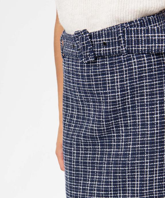 Jupe femme aspect tweed avec large ceinture à boucle bleu