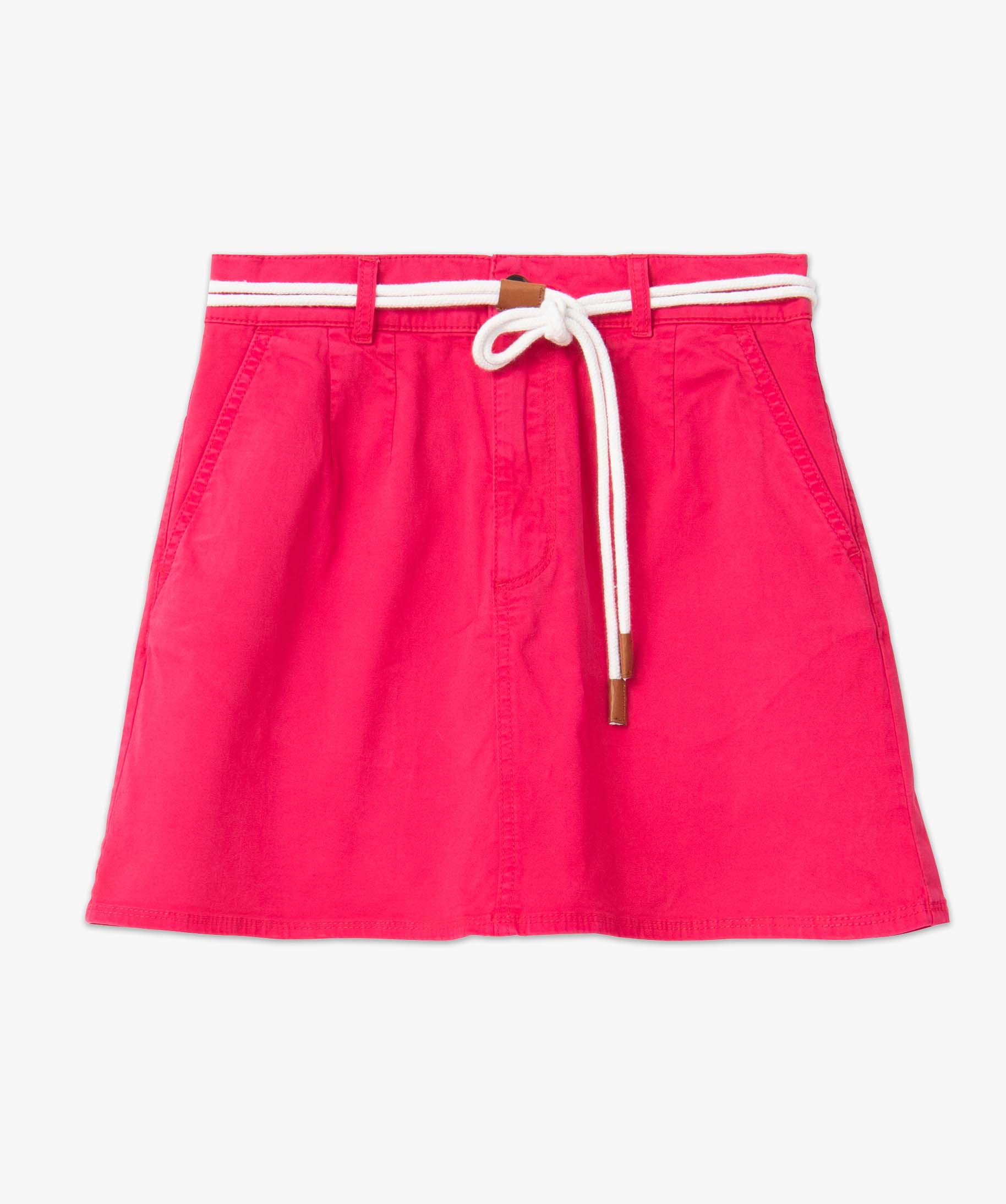 Jupe femme en coton stretch avec ceinture cordelette rose