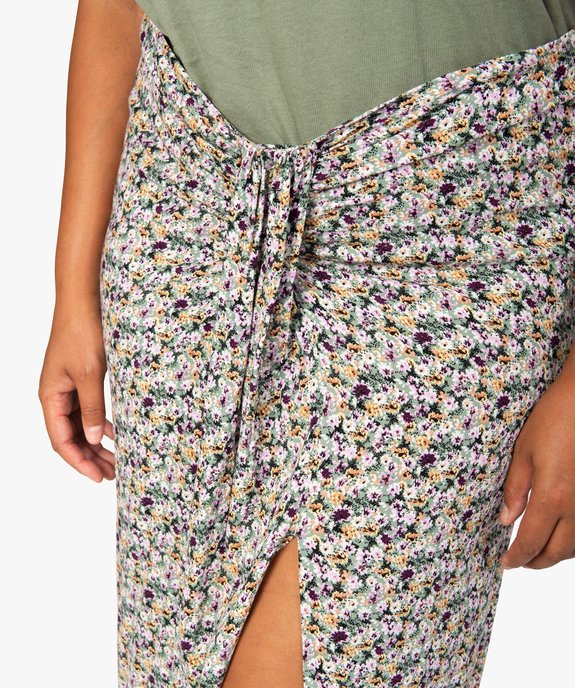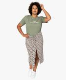 Jupe femme grande taille à motifs fleuris fendue sur l’avant kaki fonce