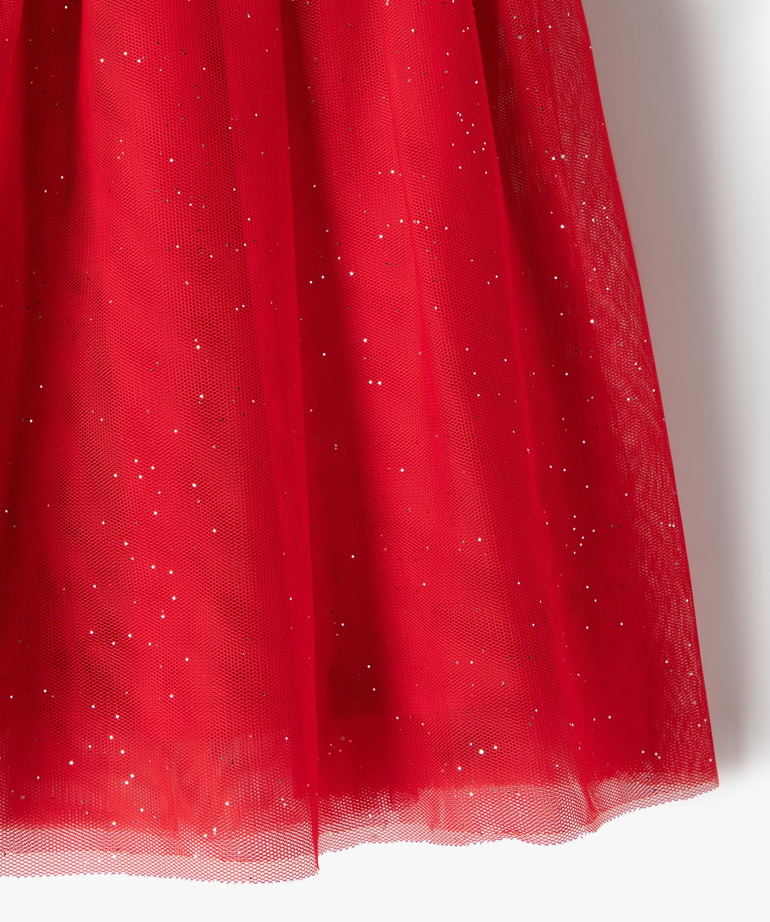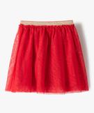 Voici une jolie jupe pour fille à adopter pour toutes les grandes occasions et pour les fêtes de fin d’année. Une jupe de fête à la coupe ample, composée de deux couches de tulle dont une parsemée de paillettes et d’une doublure en maille extensible. Cette jolie jupe pailletée possède une ceinture élastiquée entièrement pailletée. Une jupe scintillante à porter avec une blouse unie ou avec un top à bretelles.