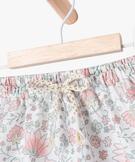 Ajoutez une touche de romantisme et de brillance aux tenues des petites filles grâce à cette jupe à volant parsemée de motifs fleuris et illuminée par de délicates touches scintillantes. Une jupe bébé fille à la coupe ample qui offre beaucoup d’aisance aux tout-petits et s’enfile facilement grâce à une taille élastique. Elle est agrémentée d’une petite cordelette nouée à la taille, incrustée de fil pailleté. Cette jupe fleurie se porte avec la blouse à bretelles assortie ou avec un tee-shirt uni.