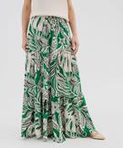 Jupe longue à volants en viscose froissée et imprimée femme vert