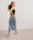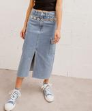 Vous allez adorer l’allure vintage de cette jupe pour fille. Une jupe longue en jean agrémentée de surpiqûres contrastantes et de larges poches à rabat sur les côtés. Ses finitions sans coutures dans le bas et son coloris délavé lui assurent un look décontracté. Elle affiche une coupe droite avec large fente sur l’avant pour faciliter la marche. En fonction de la météo, Cette jupe en jean se porte avec un sweat et des boots ou avec un tee-shirt et des baskets. Fermeture par zip et bouton. Passants pour ceinture. Deux poches devant, deux poches plaquées au dos et deux poches à rabat sur les côtés.