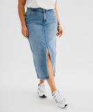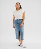 Jupe longue en jean fendue sur l’avant femme grande taille bleu clair