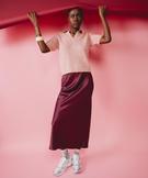 Cette jupe pour femme séduit par sa matière satinée aux jolis reflets. Une jupe longue à la coupe légèrement évasée qui souligne la silhouette avec élégance et flotte délicatement lors de la marche. Elle est dotée d’une ceinture élastique qui tient sans serrer et facilite l’habillage. Une jolie jupe satinée à porter avec un pull en grosse maille et des bottes en hiver ou avec un tee-shirt et des sandales en été.