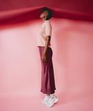 Jupe longue en matière satinée femme rouge fonce