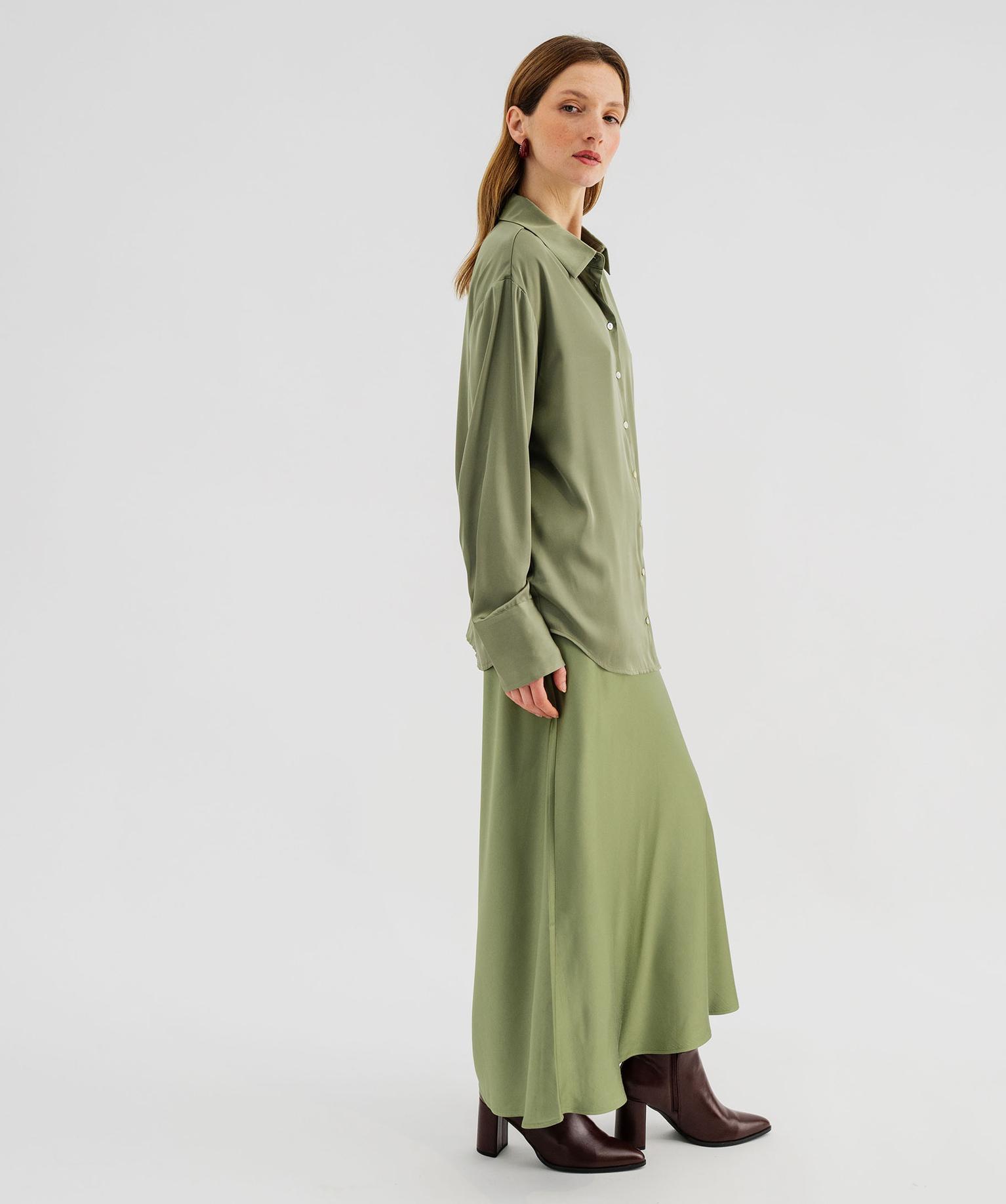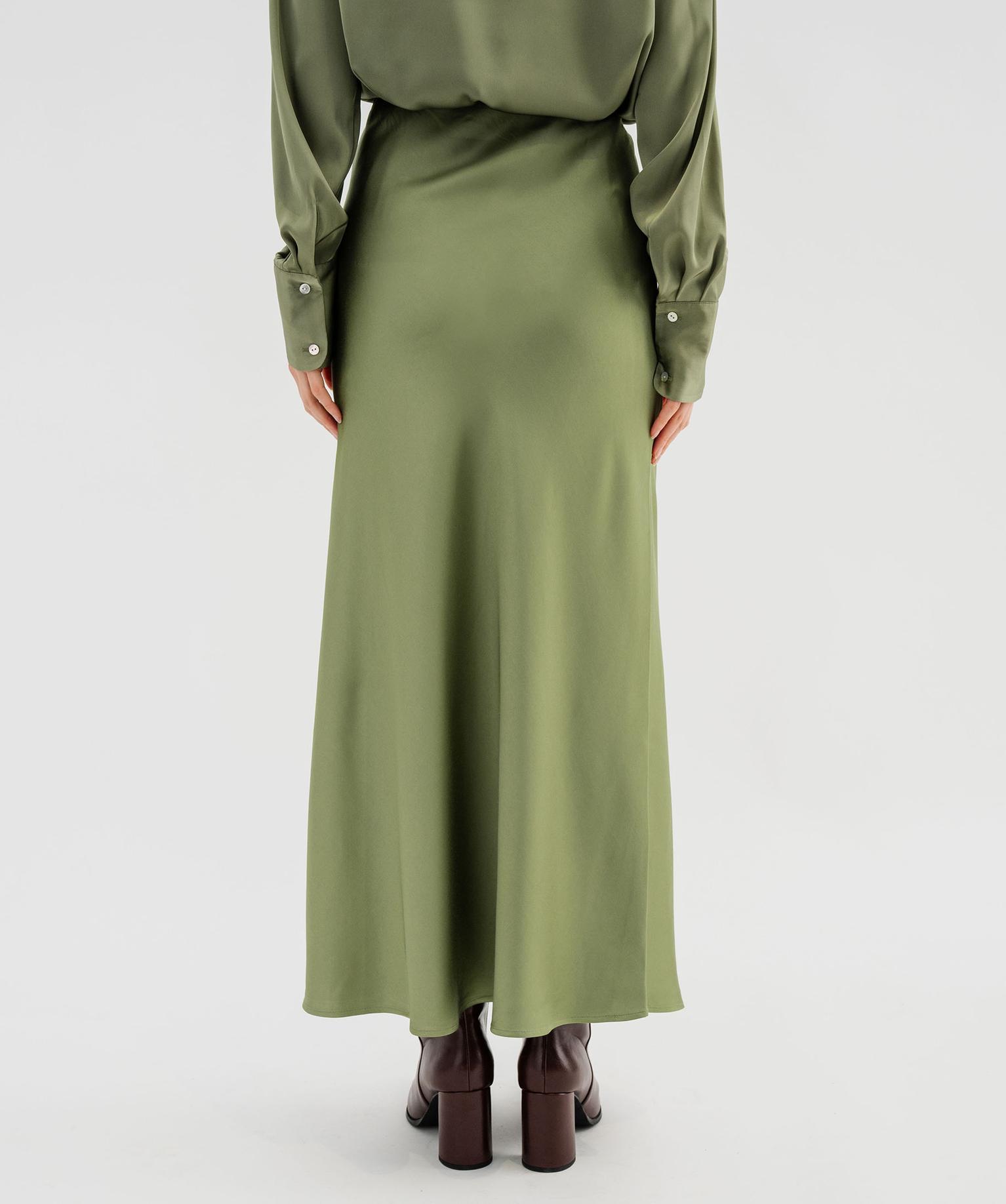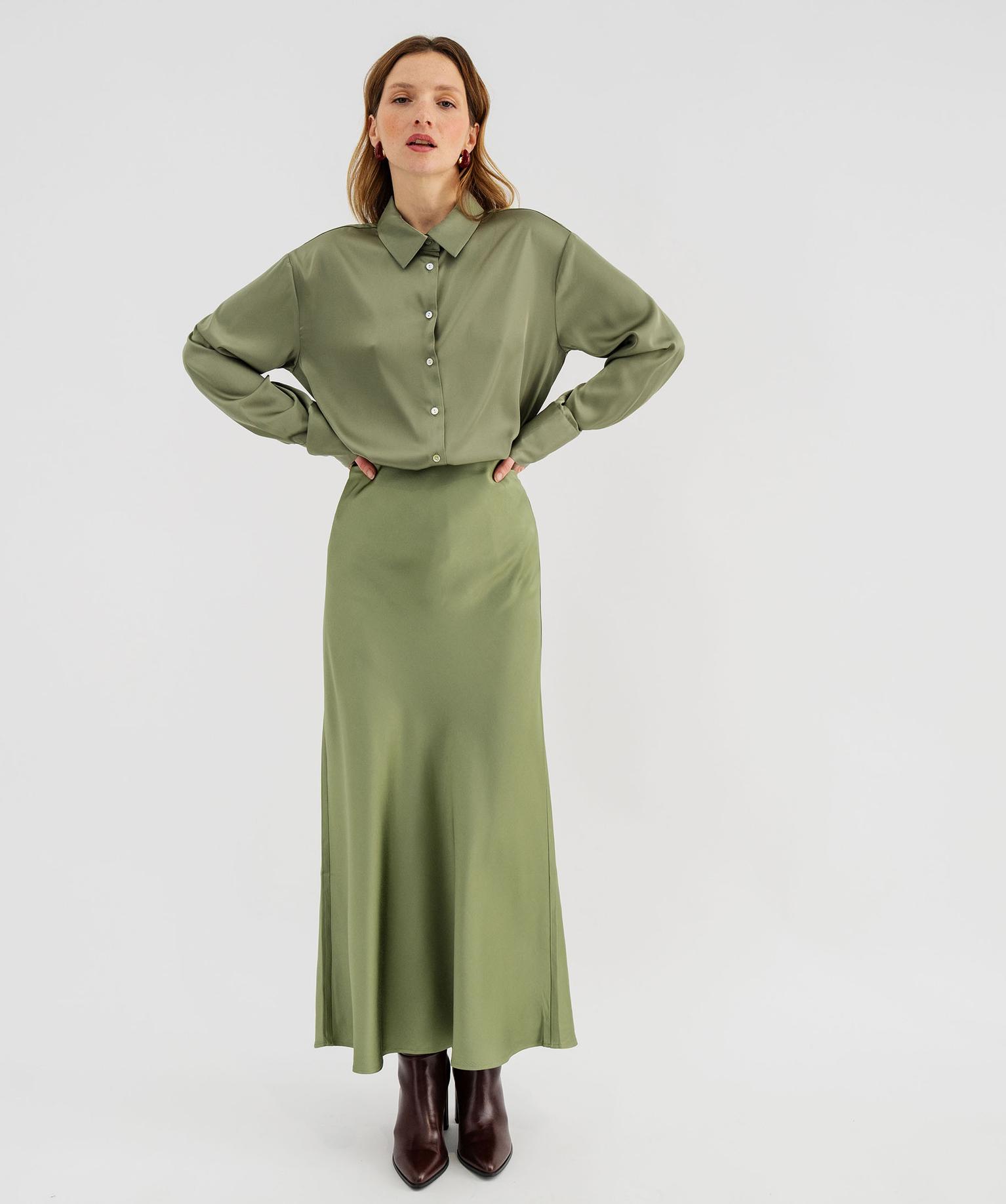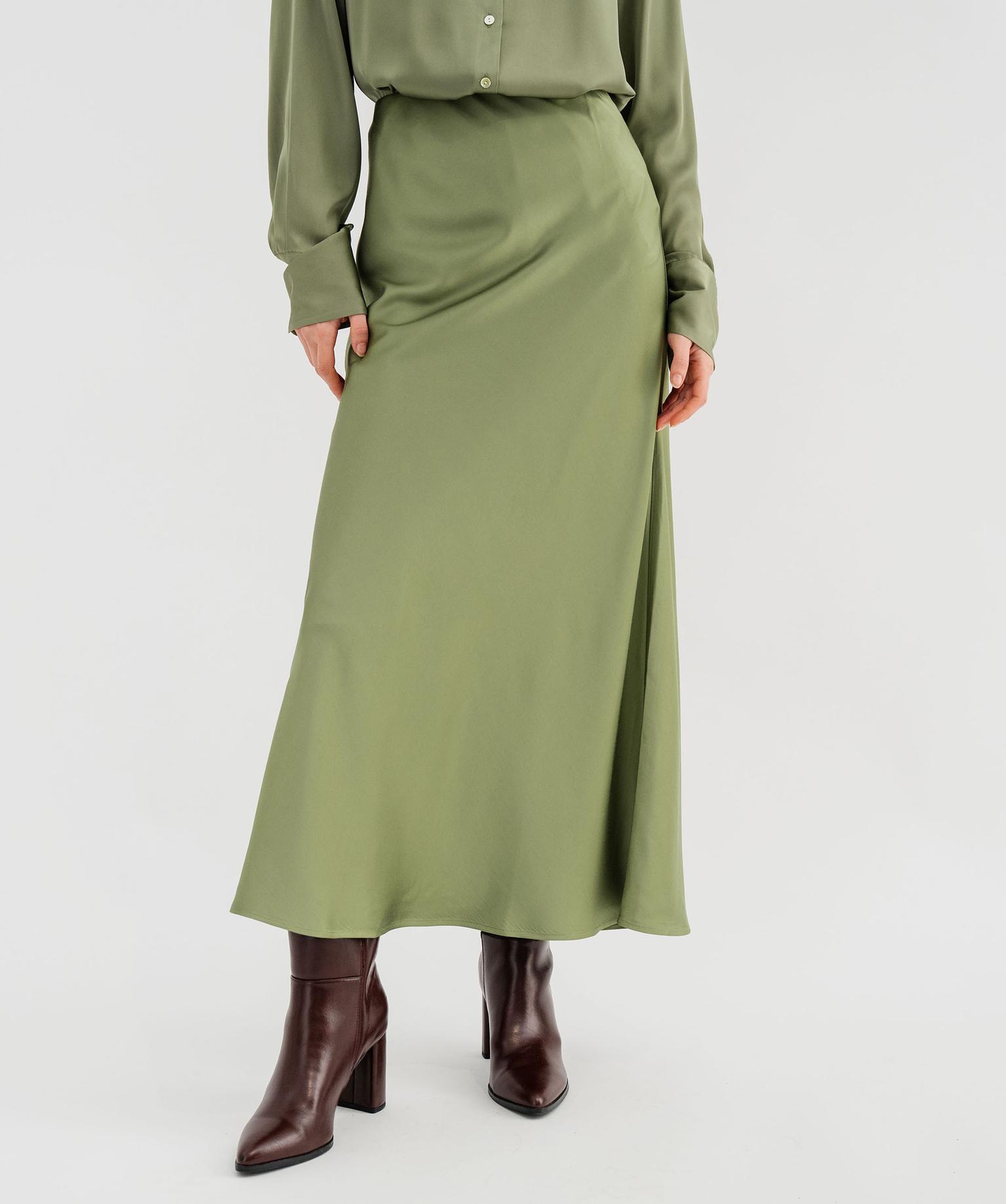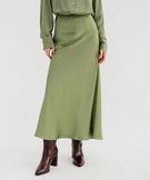 Jupe longue en matière satinée taille élastique femme kaki clair