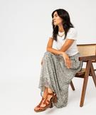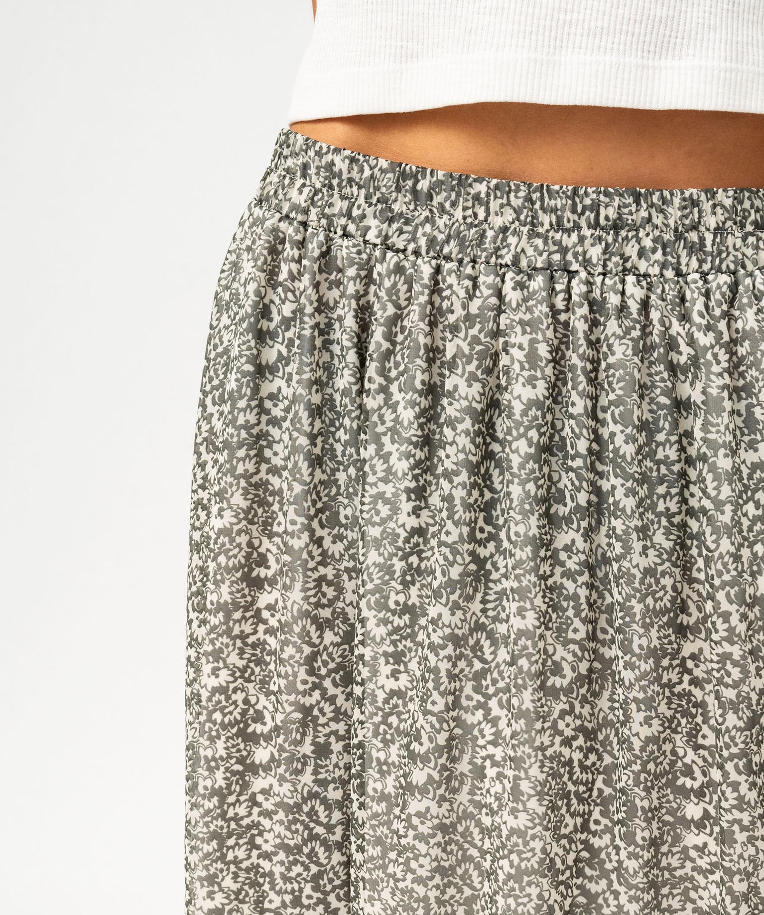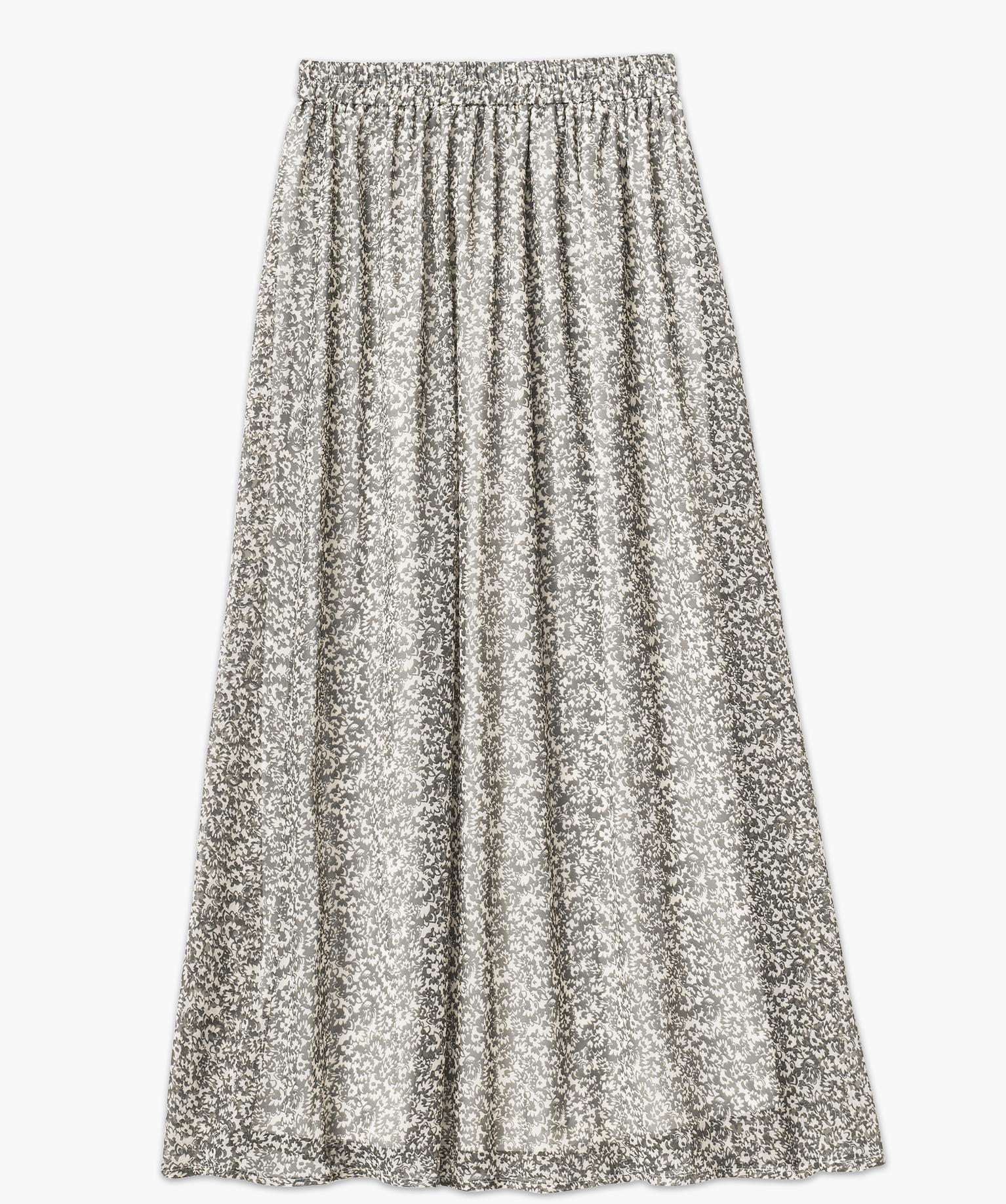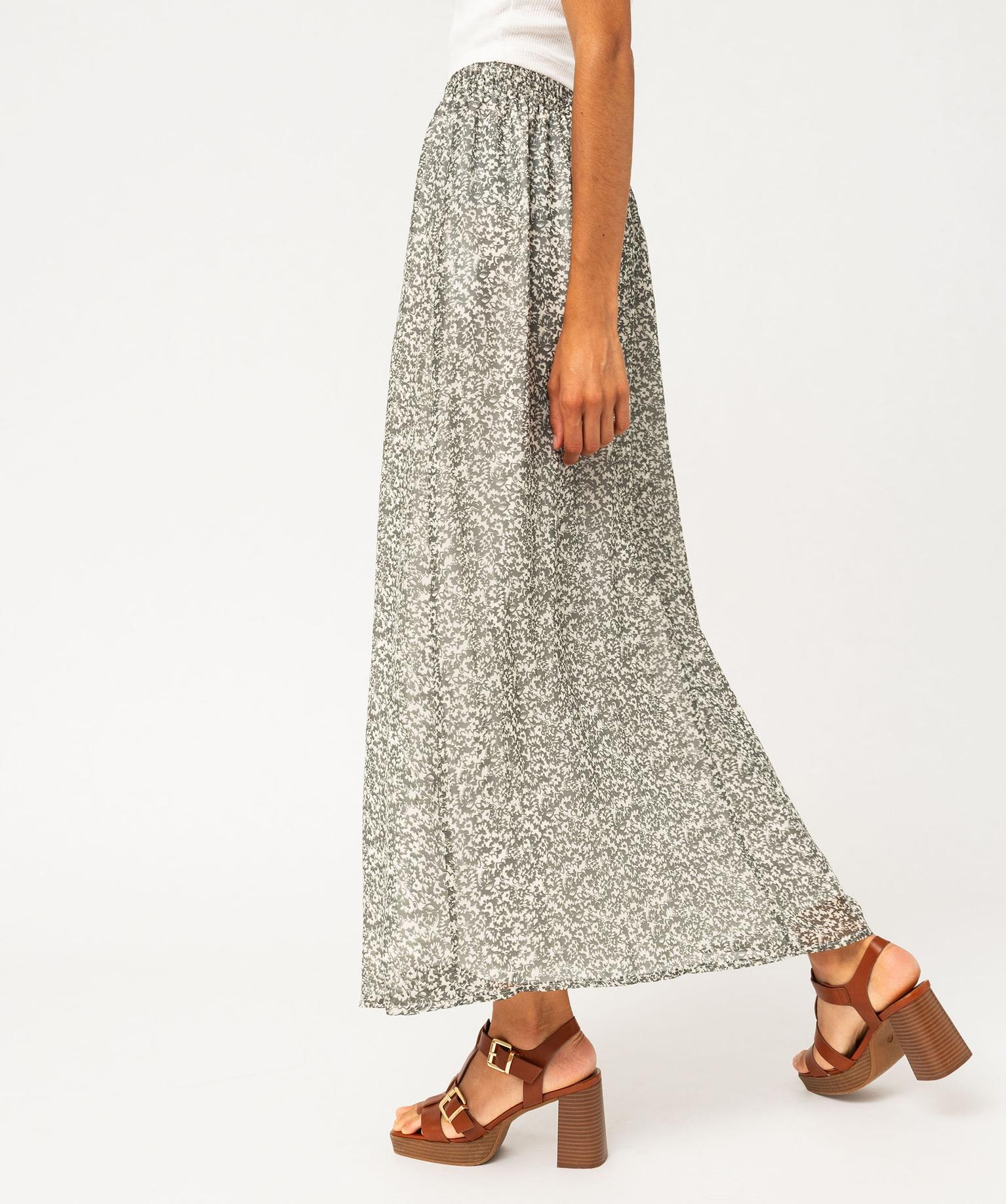 Jupe longue en voile fleuri femme kaki