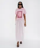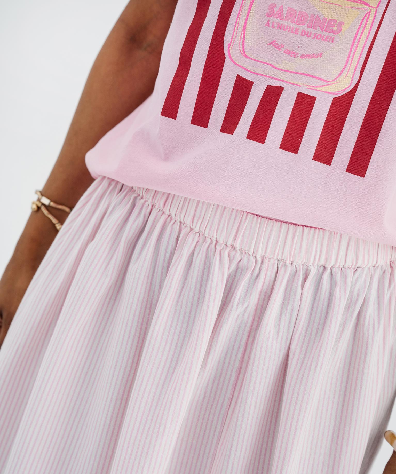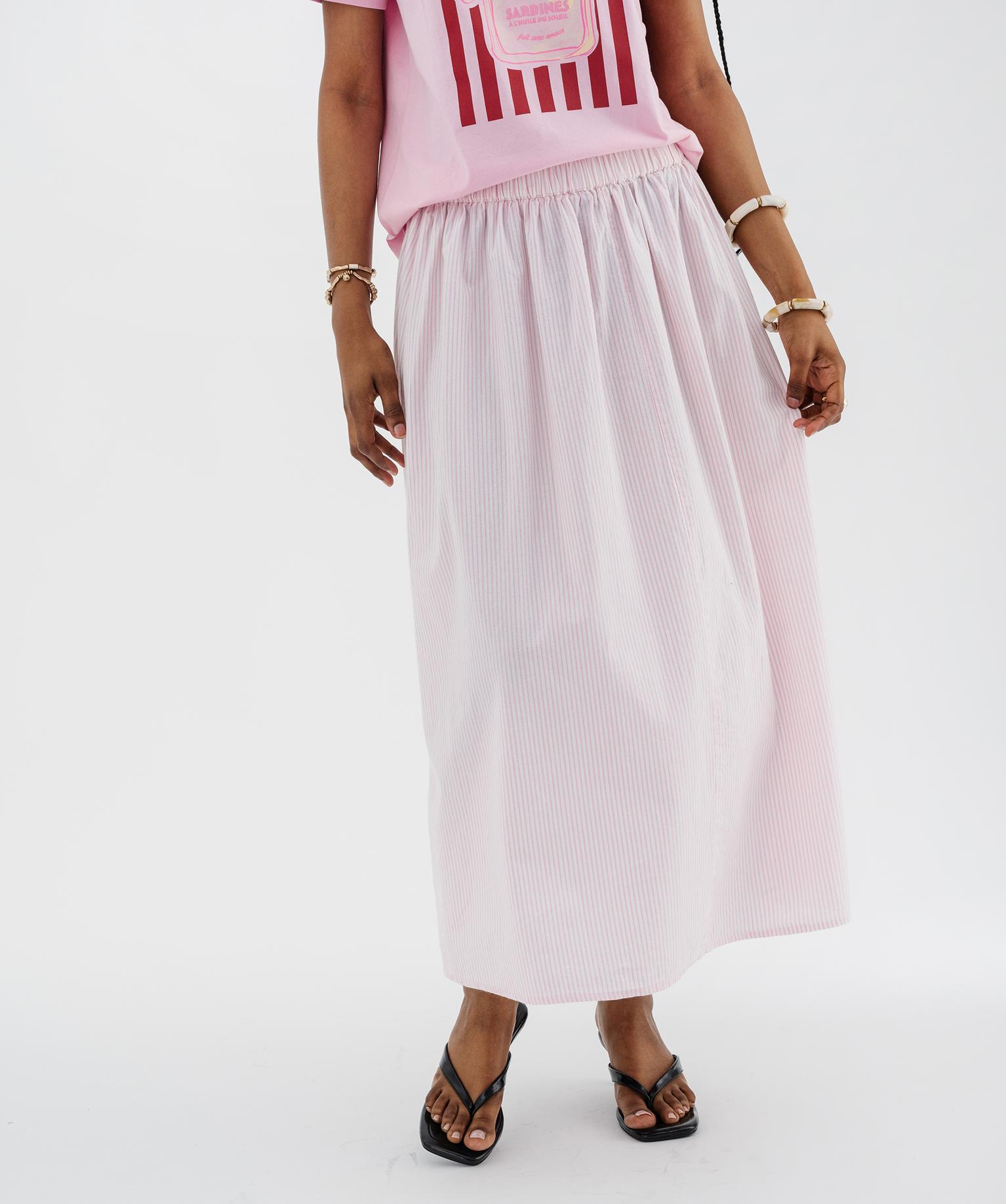 Jupe longue et ample en coton rayé femme rose