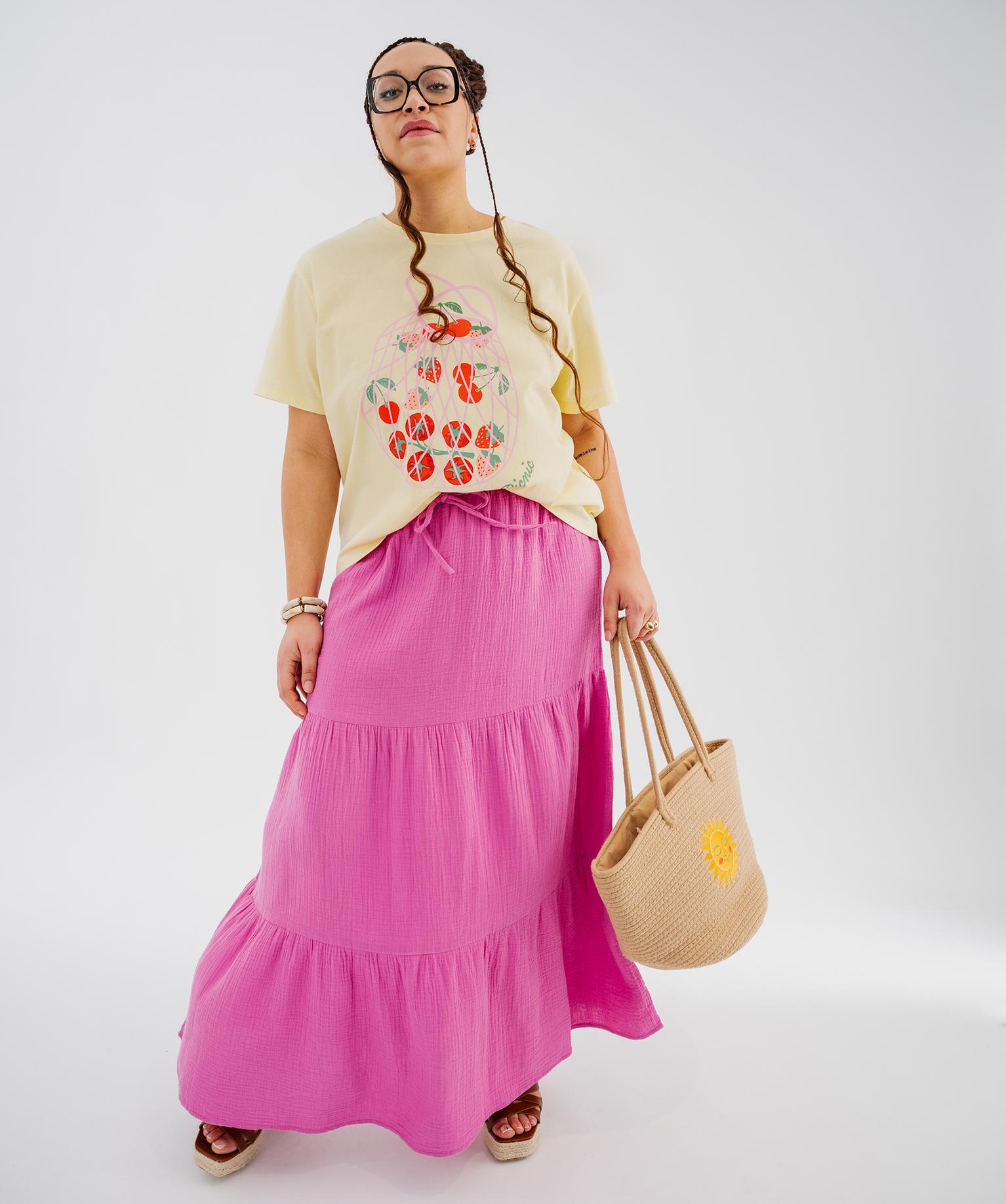 Jupe longue et ample en gaze de coton femme grande taille rose