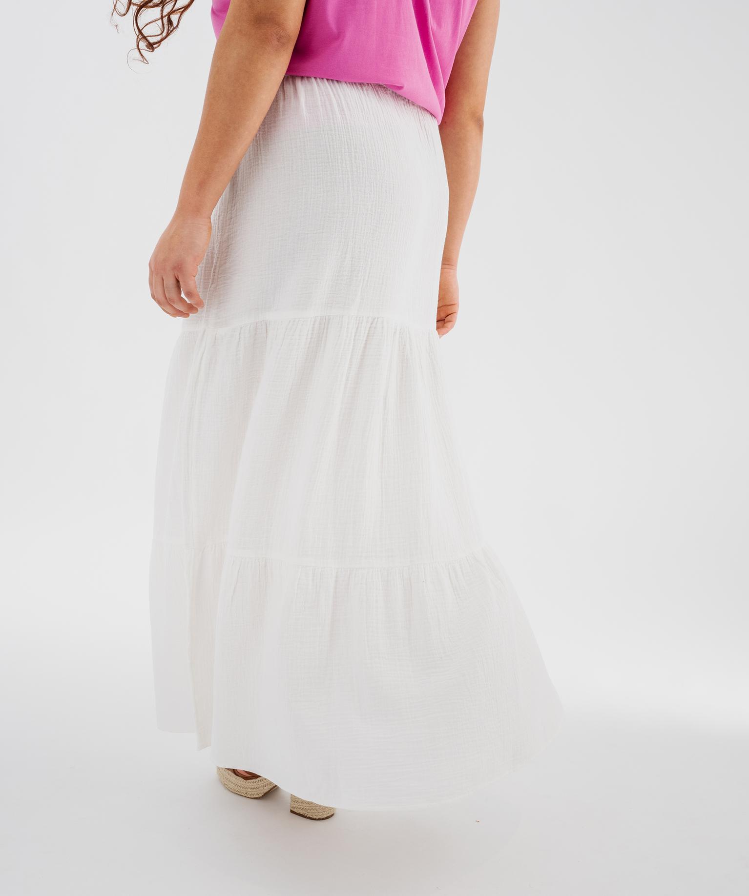 Jupe longue et ample en gaze de coton femme grande taille blanc