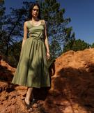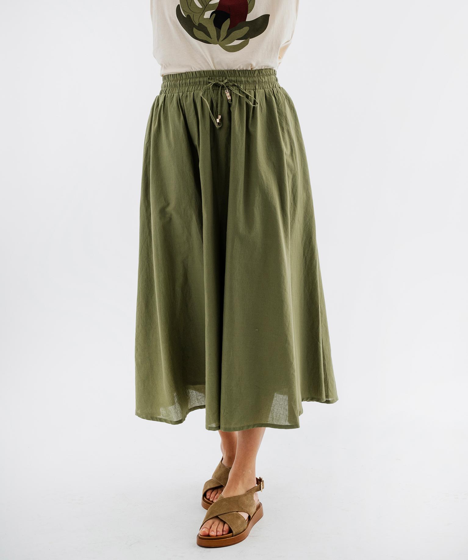 Jupe longue et ample en voile de coton à taille élastiquée femme vert