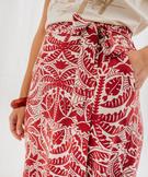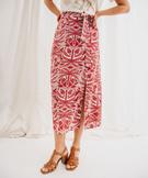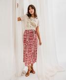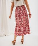 Jupe longue fendue en viscose fluide imprimée à taille élastiquée femme rouge