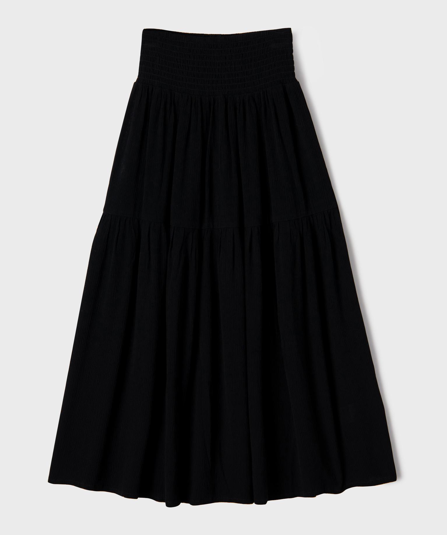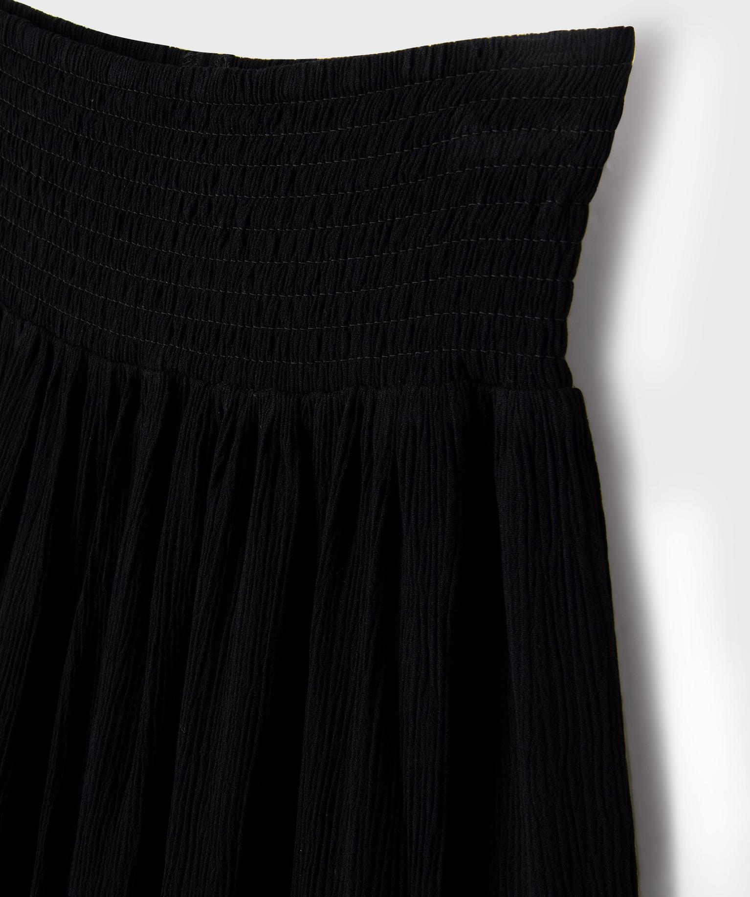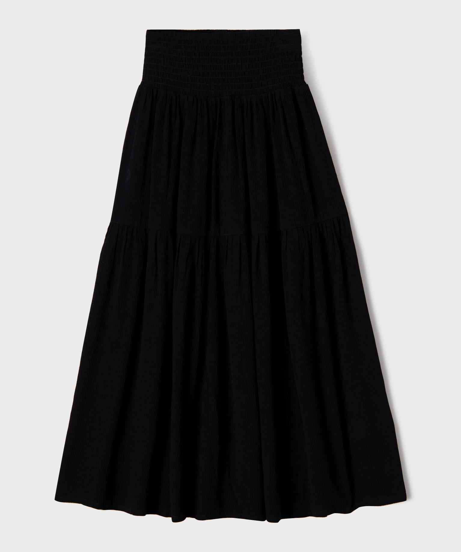 Votre ado ne résistera pas au charme bohème de cette jupe longue. La jupe fille se compose d'une superpositions de volants en crêpe de viscose froissé, avec, touche finale aussi confortable que stylée, une large ceinture à smocks. Ample, fluide, la jupe est idéale pour les beaux jours. À porter avec un tee-shirt aux manches courtes roulottées, rentré à la taille, et des baskets plateformes.