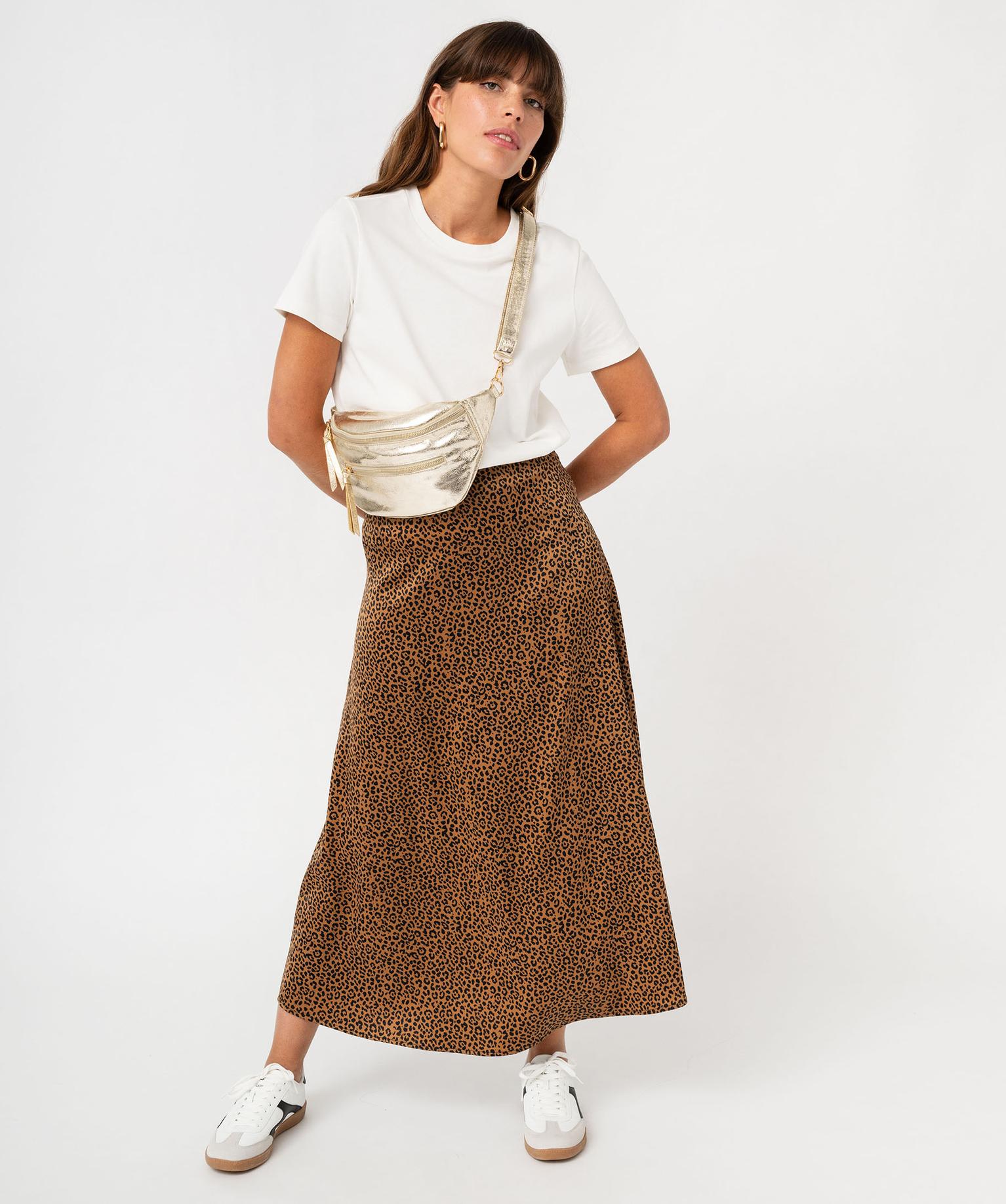 Ajoutez une touche animale dans votre dressing grâce à cette jolie jupe longue à motif léopard. Une jupe en matière satinée offrant de subtils reflets et un maximum de confort. Totalement tendance, cette jupe femme permet de composer de nombreux looks, quelle que soit la saison. Elle se porte avec un tee-shirt et des baskets en été, avec un pull col roulé et des bottes en hiver ou encore comme jupe de soirée avec une chemise satinée unie et des escarpins à talon. Fermeture par zip invisible sur le côté.