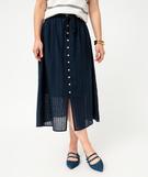 Jupe midi à boutons en coton/lin mélangés femme - LuluCastagnette marine