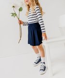 Incontournable du dressing des filles, la jupe plissée se réinvente en maille extensible, offrant aux enfants une grande liberté de mouvement. Dotée d'une large ceinture élastique, cette jupe pour fille assure un habillage facile et un confort maximal tout au long de la journée. Une jupe idéale pour les petites filles actives qui veulent allier style et confort. Parfaite pour toutes les occasions, elle se porte aussi bien avec un tee-shirt et des baskets pour un looks sporty chic, qu’avec une chemise et des ballerines pour une allure plus formelle.