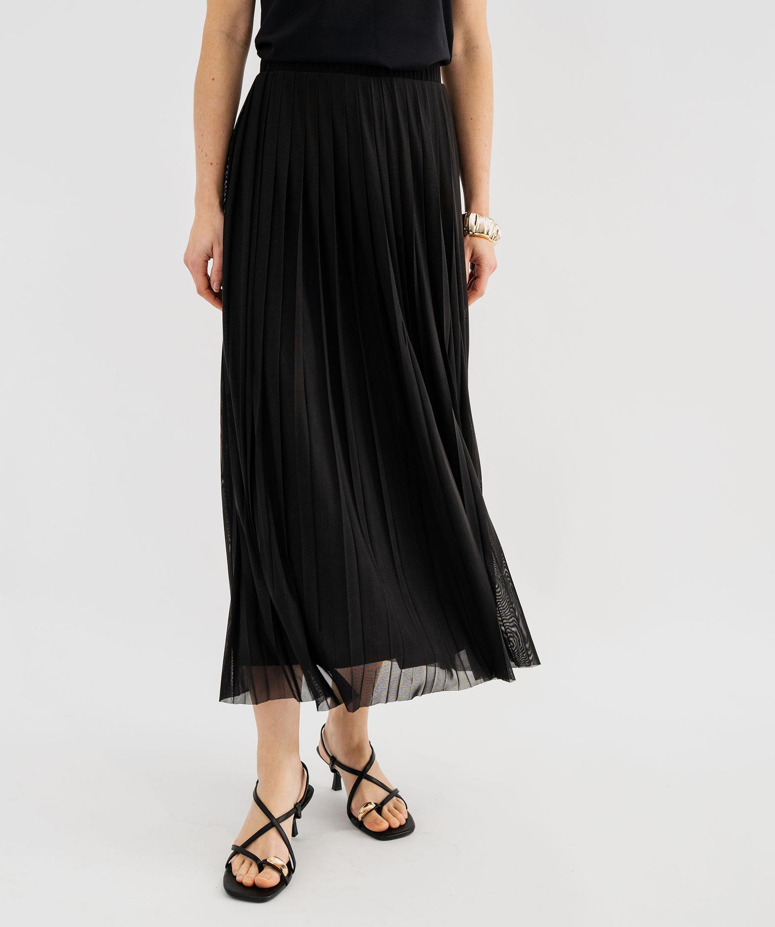 Laissez-vous séduire par cette jolie jupe plissée en maille résille inspirée du tulle au toucher doux et fluide. Une jupe pour femme entièrement doublée pour éviter toute transparence, dotée d’un large élastique à la taille assurant un habillage facile et un maximum de confort. Cette jupe longue se plie à toutes les envies et se porte avec un pull et des boots en hiver ou avec un tee-shirt et des sandales en été.