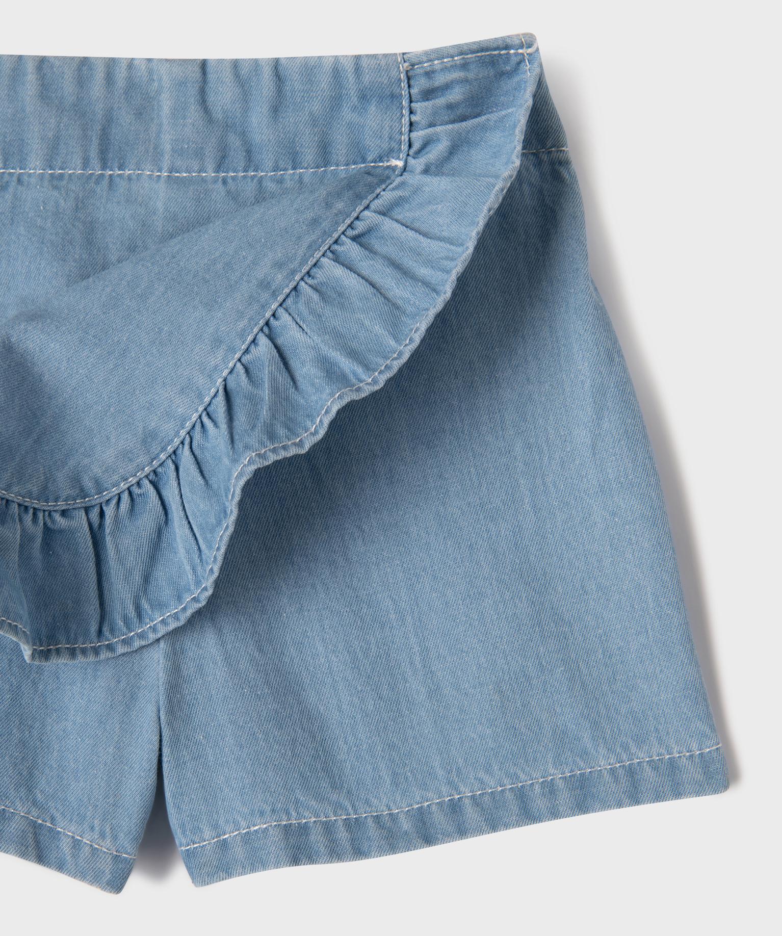 Jupe short en jean à volant bébé fille bleu clair