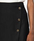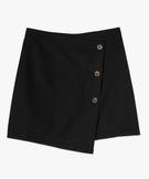 La jupe short est la solution idéale pour une allure élégante et un maximum de confort. Ce short femme possède une coupe ample, des pinces sur l’arrière et une ceinture plate avantageuse pour la silhouette. Un pan asymétrique orné de trois boutons fantaisie est positionné sur l’avant pour un effet jupe portefeuille. Une jupe –short à porter avec une blouse fleurie, des collants et une paire de derbies. Fermeture zippée sur le côté.