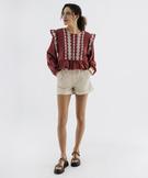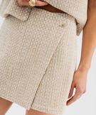 Craquez pour l’élégance intemporelle de cette jupe-short pour femme. Confectionnée dans un textile effet tweed délicatement incrusté de fils métallisés, et rehaussée d’un bouton doré orné d’un blason raffiné, elle conjugue avec brio confort et sophistication. Ce modèle hybride réunit la praticité d’un short et la féminité d’une jupe courte. Sa fermeture zippée discrète sur le côté assure une coupe impeccable et facilite l'habillage. Cette jupe subtilement scintillante se porte avec des collants unis et des escarpins pour un look classique ou avec des bottes pour un look plus actuel.