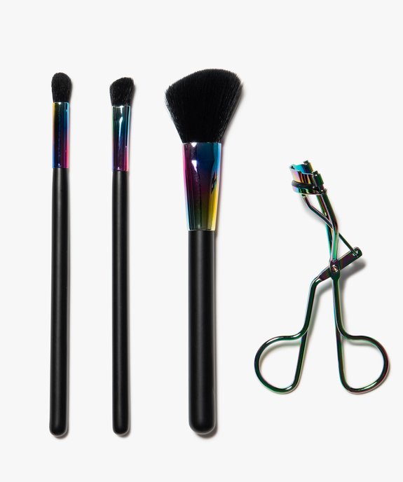Kit maquillage 4 pièces en métal irisé : pinceaux et recourbe-cils multicouleur