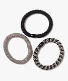 Un lot de trois élastiques pour les cheveux particulièrement pratique pour attacher les cheveux épais et les cheveux longs. Ces élastiques larges sont doux pour les cheveux et permettent de créer des coiffures sans tirer. Un lot d’élastiques pour fille composé de modèles différents mais arborant tous des reflets scintillants ou pailletés pour ajouter une touche de lumière dans la chevelure des filles.