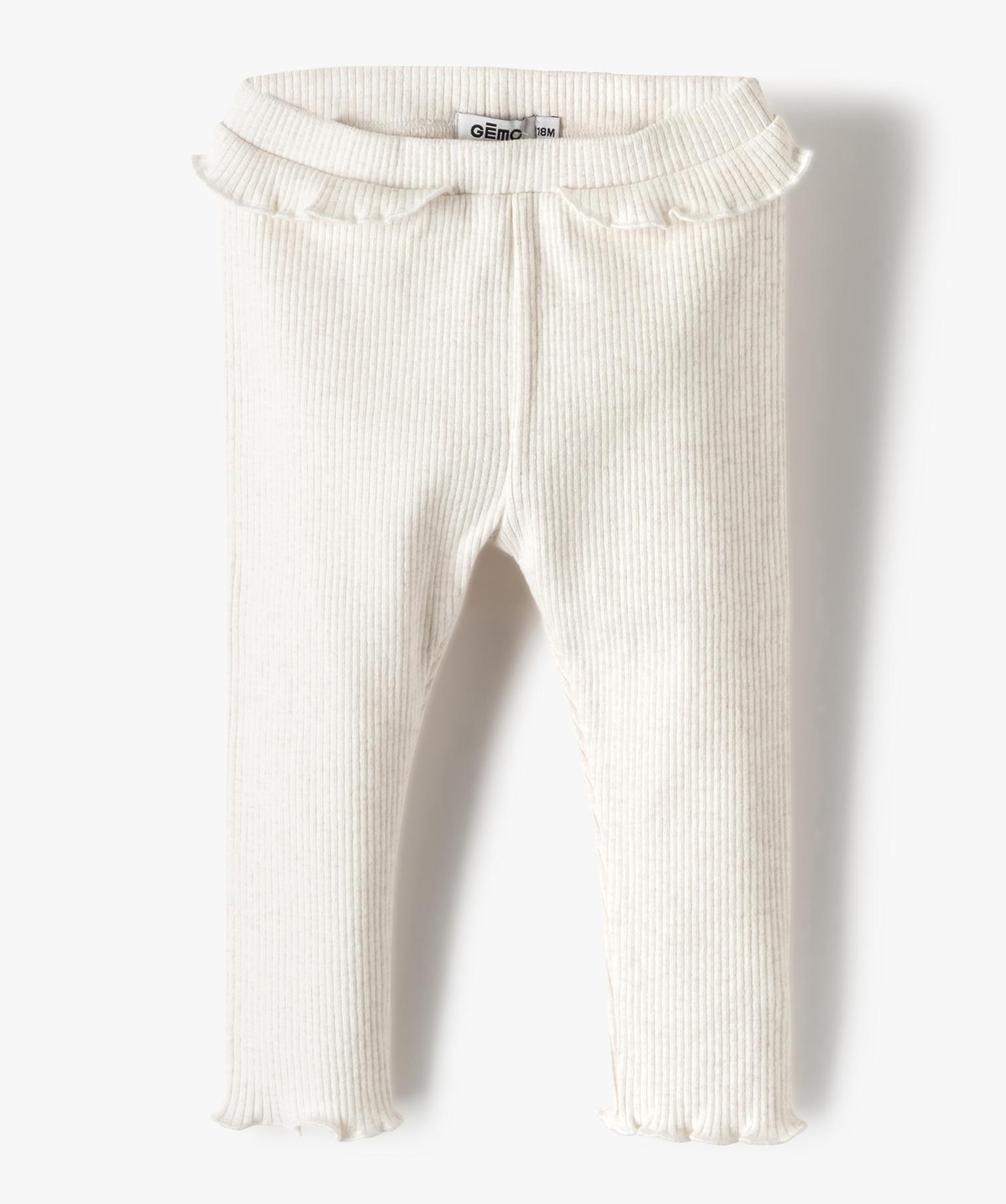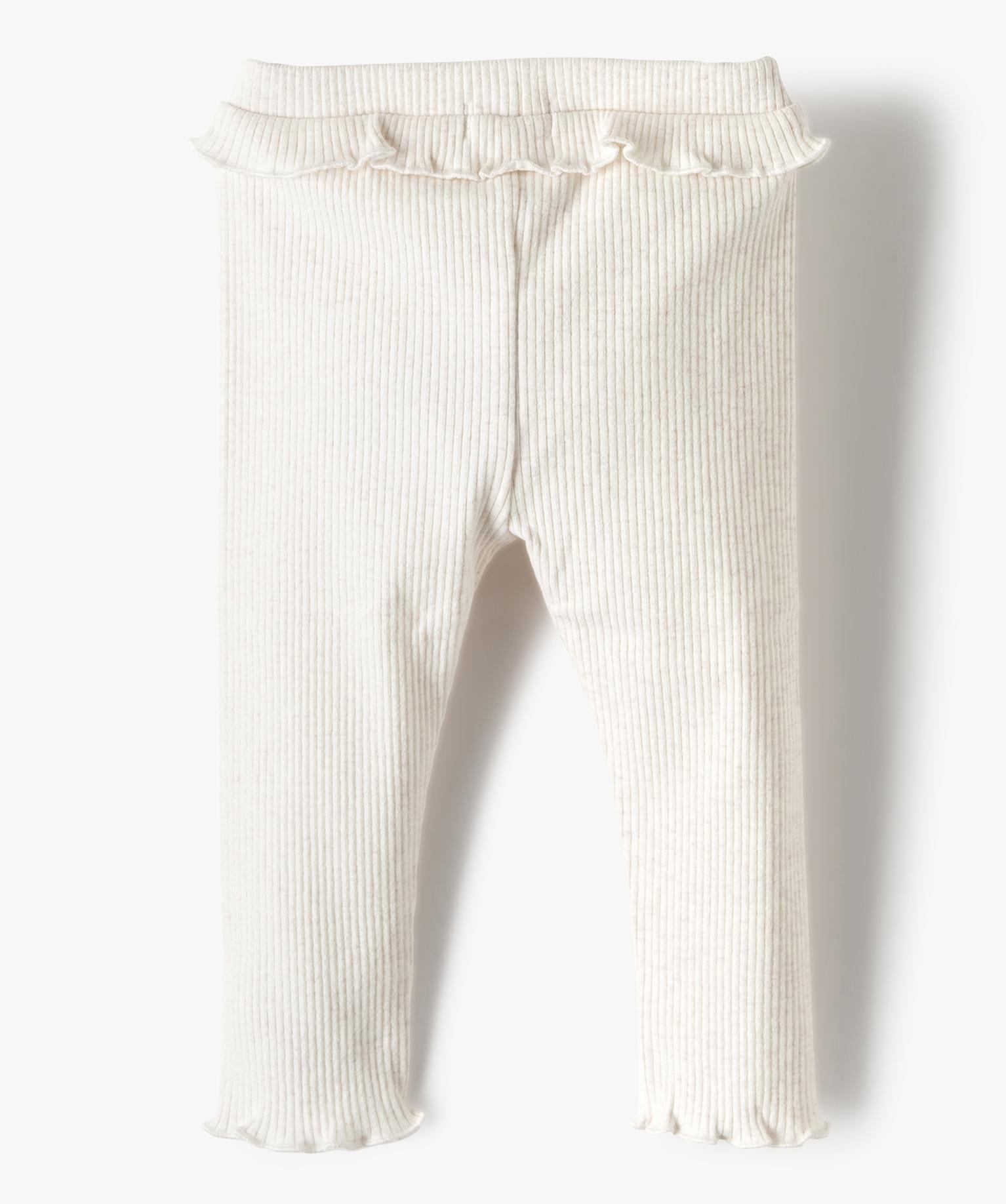 Un legging girly et sporty à la fois, avec sa maille côtelée et sa basque à la taille ! Ce legging bébé fille est confectionné à partir de coton biologique doux pour la peau et extensible afin d'accompagner tous les mouvements de bébé. Sa taille élastiquée facilite l'habillage et ajoute au confort. On adore sa finition roulottée en bas de jambe. Les petites filles porteront ce legging avec un gilet veste en jersey et des petites tennis.