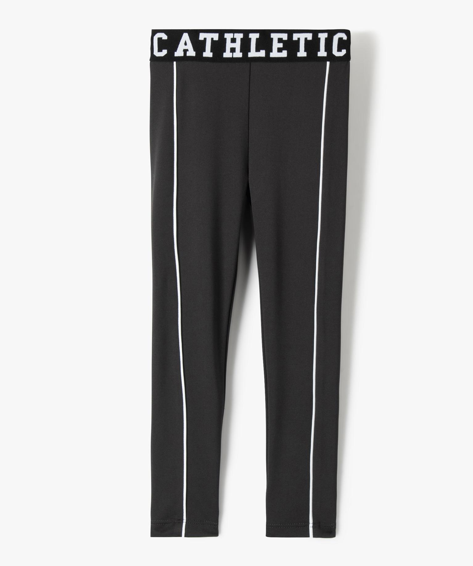 Legging de sport fille à large ceinture élastique gris