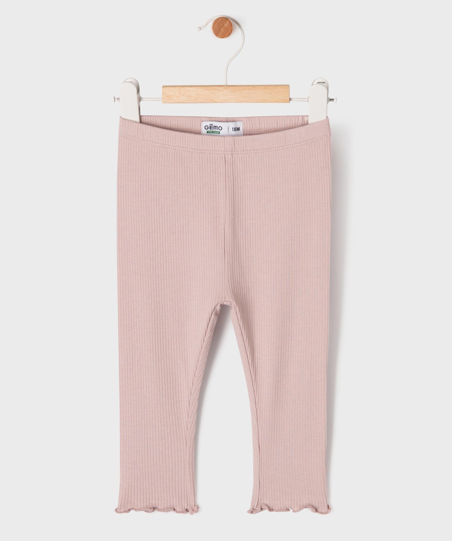 Legging en maille côtelée et finitions froncées bébé fille violet clair
