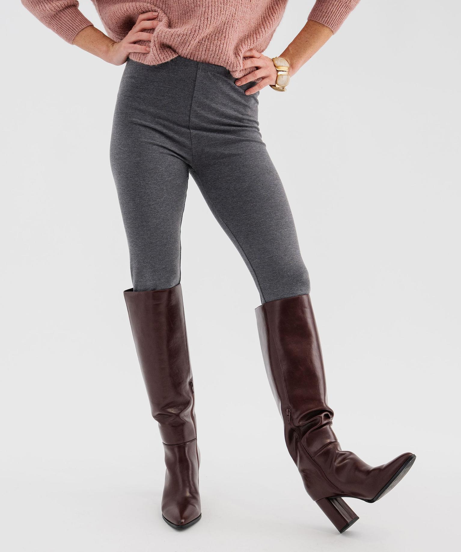 Legging uni en maille résistante femme gris chine