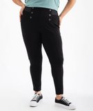 Découvrez le summum du bien-être et de l’élégance avec ce leggings à pont, parfaitement adapté aux femmes recherchant une pièce décontractée et chic à la fois à porter au quotidien comme en soirée. Ce leggings femme grande taille (du 46/48 au 54/56) est confectionné dans une maille extensible et doté d’une large ceinture élastique. Il est agrémenté d’une couture sur l’avant des jambes et de jolis boutons fantaisie sur les hanches. Un pantalon en maille facile à enfiler qui sublime la silhouette en un clin d’oeil et se porte aussi bien avec une chemise et des derbies qu’avec un pull et des boots.