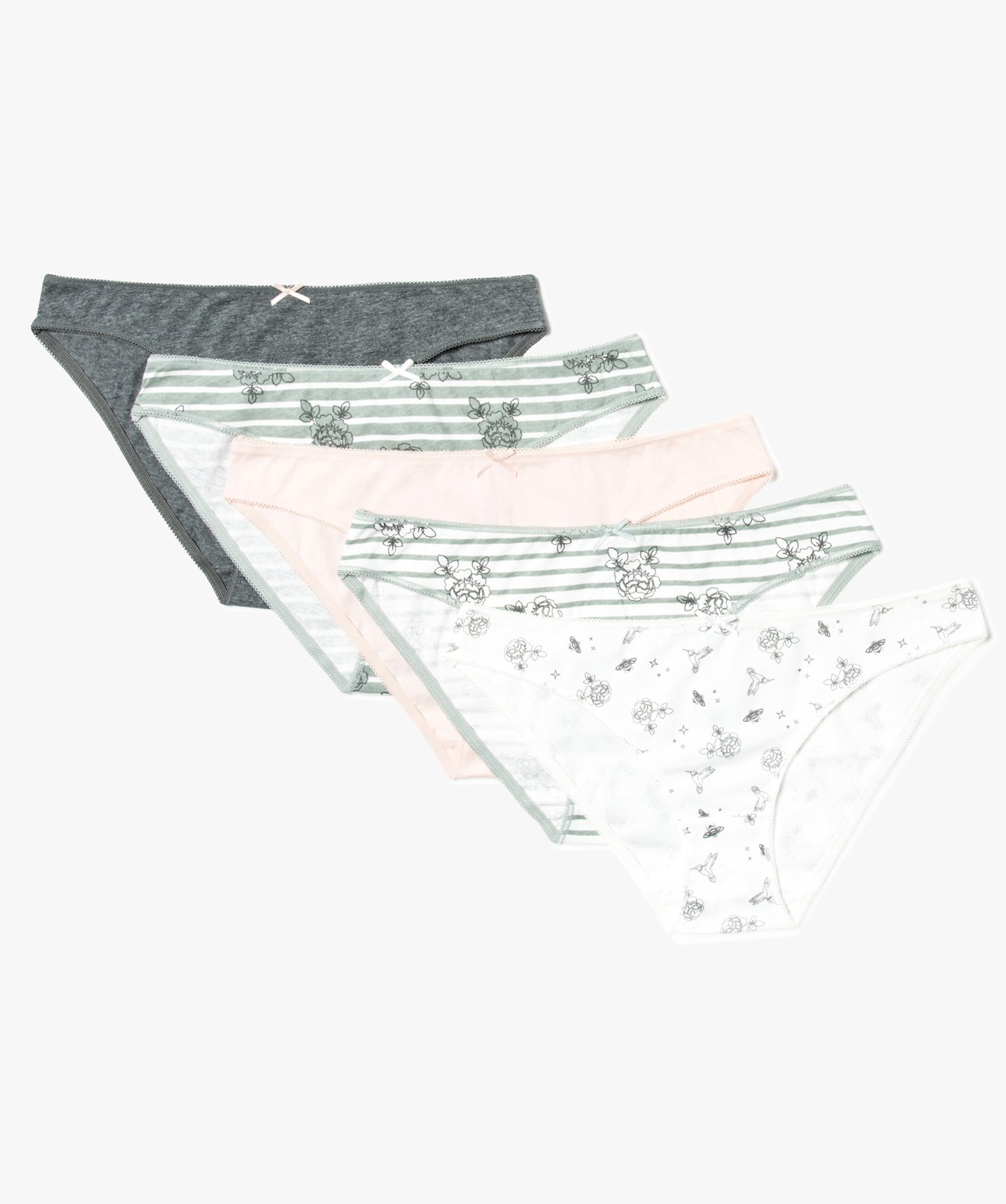 Lot de 5 slips en coton avec finition dentelle vert clair