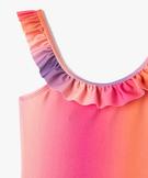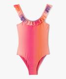 On craque pour le style girly et le design coucher de soleil de ce maillot de bain 1 pièce pour fille. Avec son encolure volanté et ses fines bretelles ajustables, il assure aux jeunes fashionistas un look à croquer ! Ce maillot de bain multicolore séduit par sa forme classique enveloppante et sa doublure intégrale, pour un confort optimal à la piscine comme à la plage.