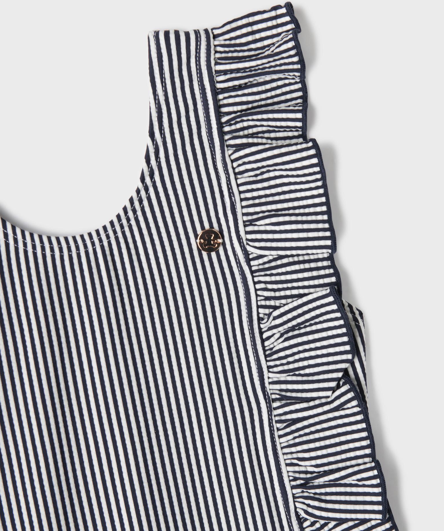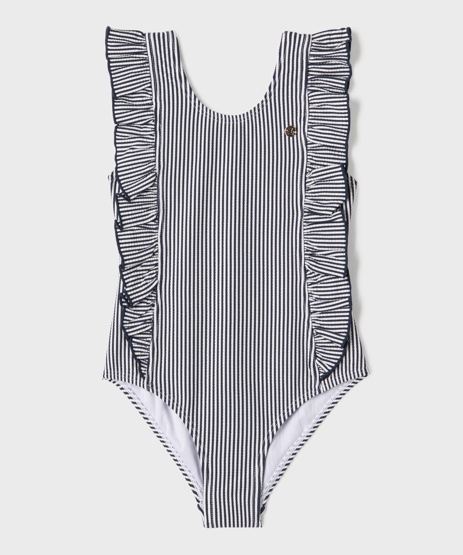 Maillot de bain 1 pièce à rayures et volants fille - LuluCastagnette bleu marine