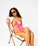 Maillot de bain 1 pièce bandeau forme bandeau femme rose