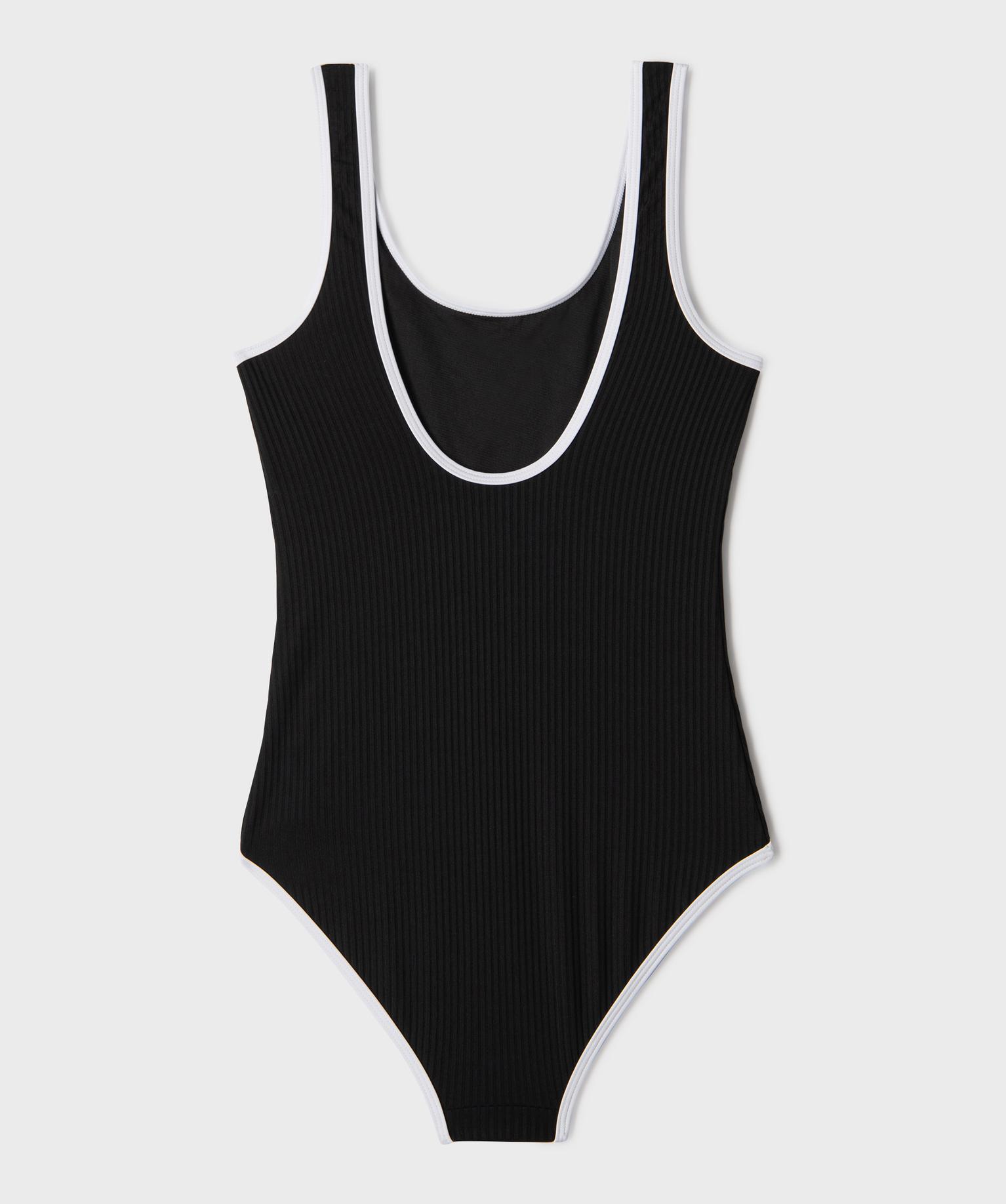 Maillot de bain 1 pièce effet côtelé fille noir