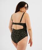 Maillot de bain 1 pièce imprimé fantaisie à dos ouvert femme grande taille kaki