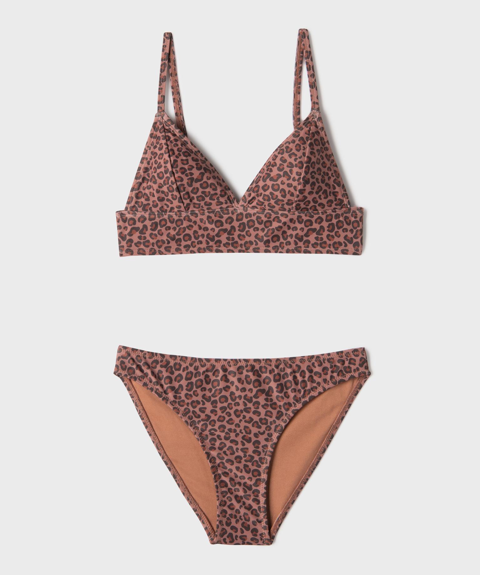 Maillot de bain 2 pièces à motif léopard fille marron