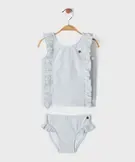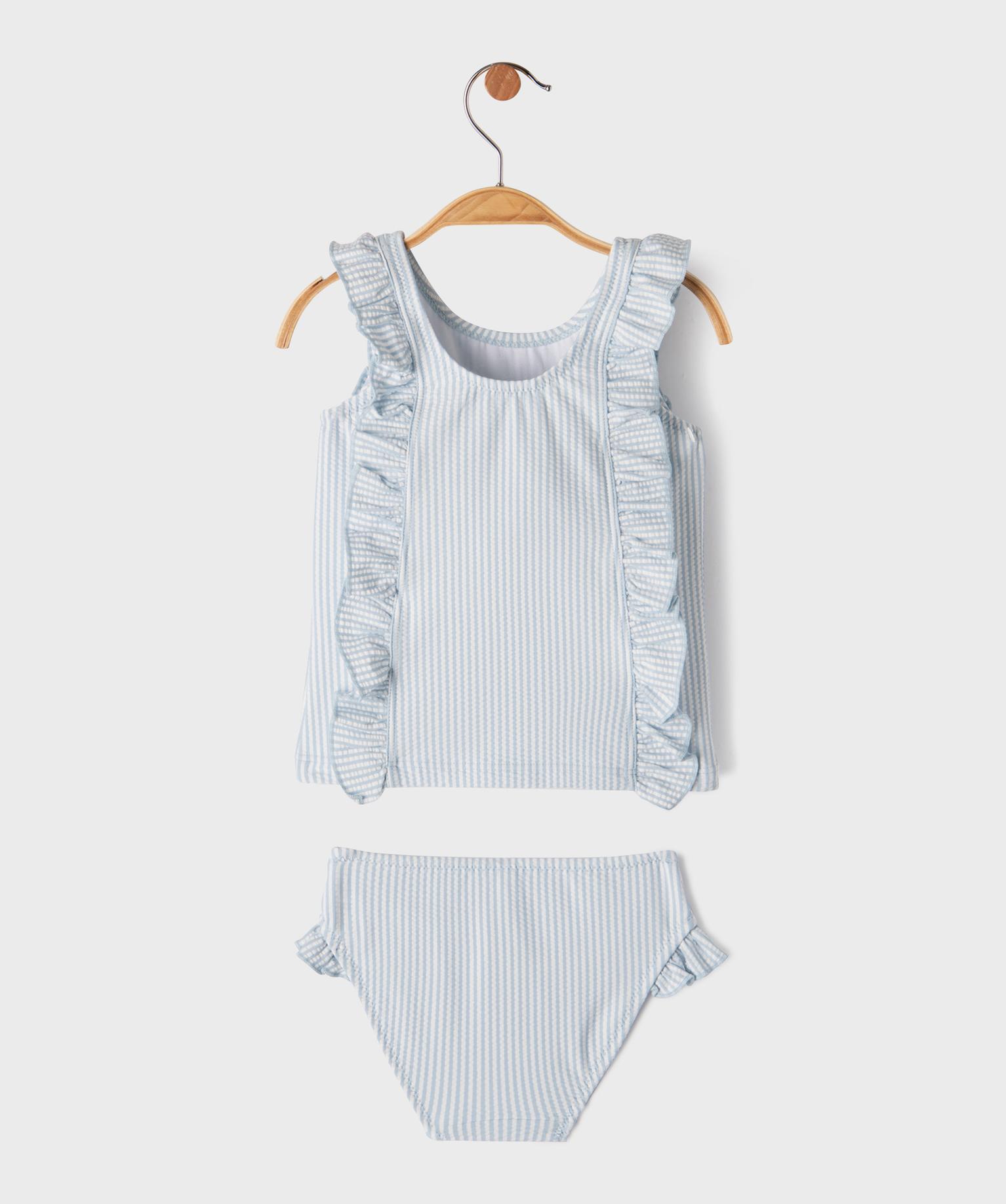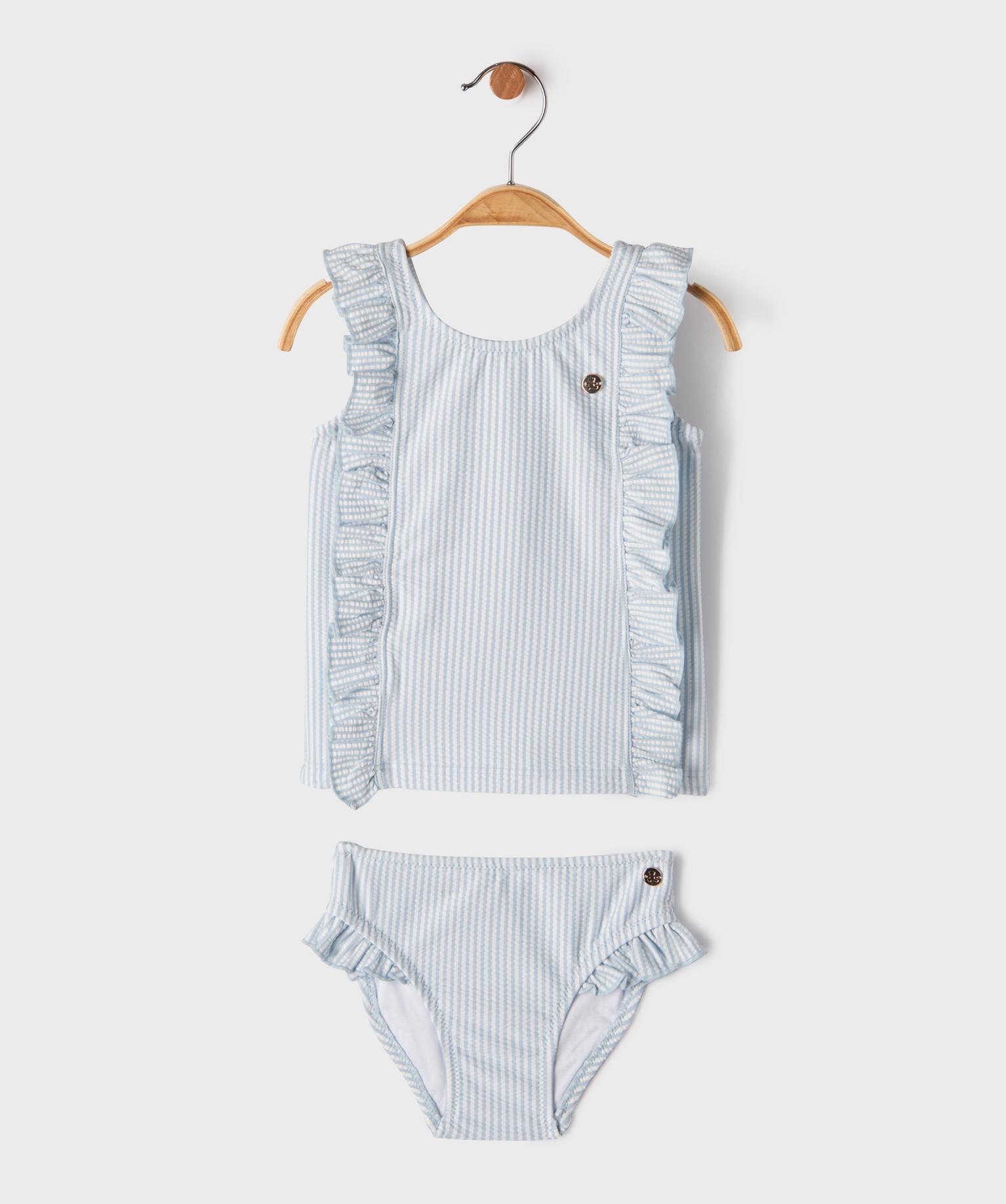 Maillot de bain 2 pièces à rayures et volants bébé fille - LuluCastagnette bleu ciel