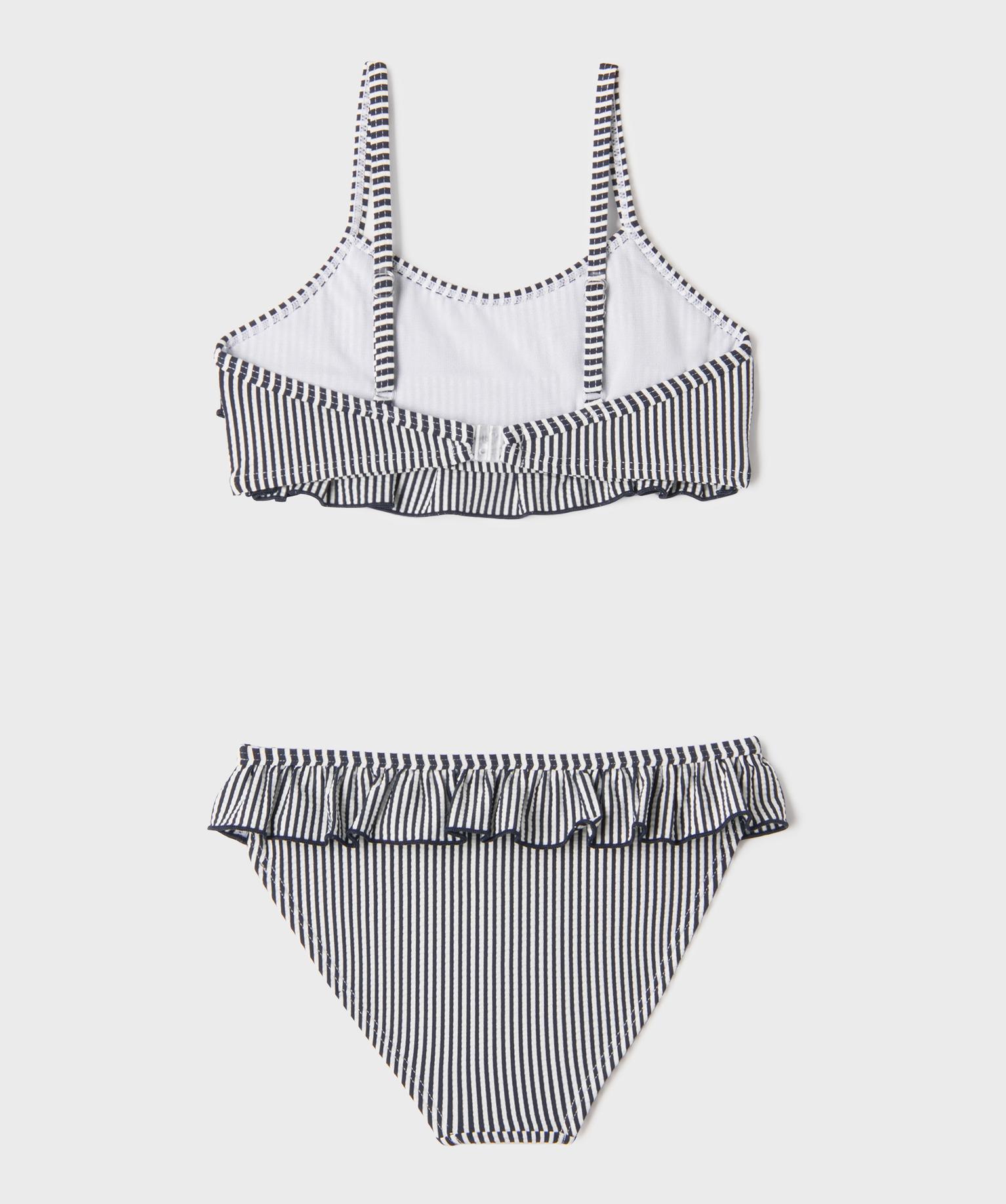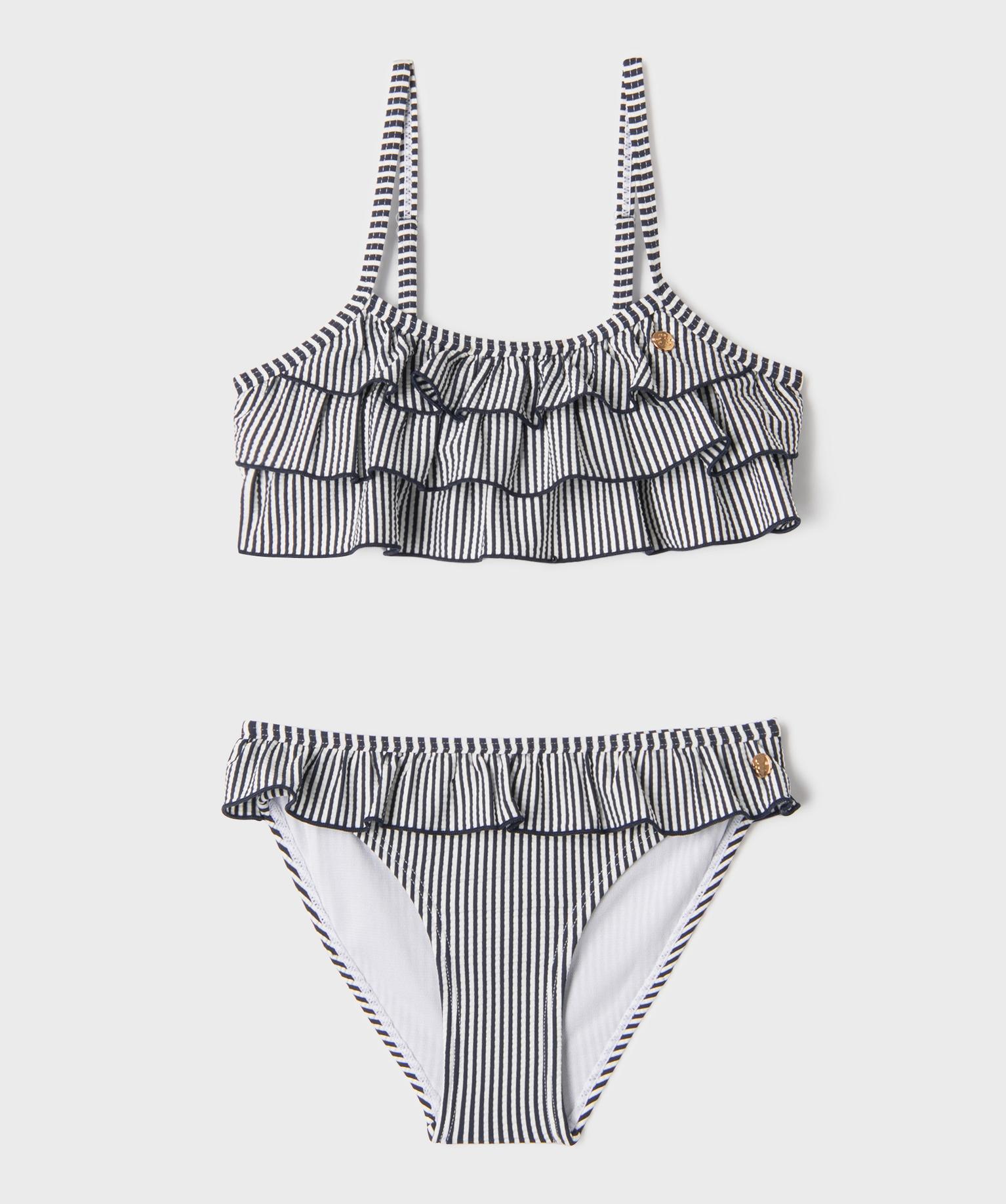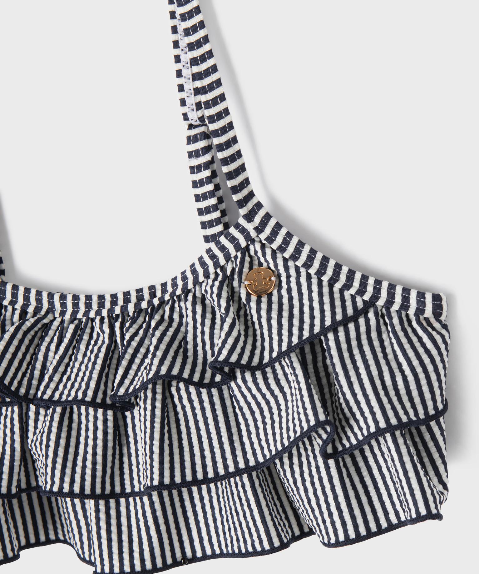 Maillot de bain 2 pièces à rayures et volants fille - LuluCastagnette bleu marine