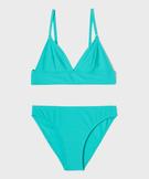 Maillot de bain 2 pièces en maille côtelée unie fille vert