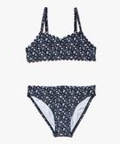 Maillot de bain 2 pièces fleuri avec brassière à fines bretelles fille marine