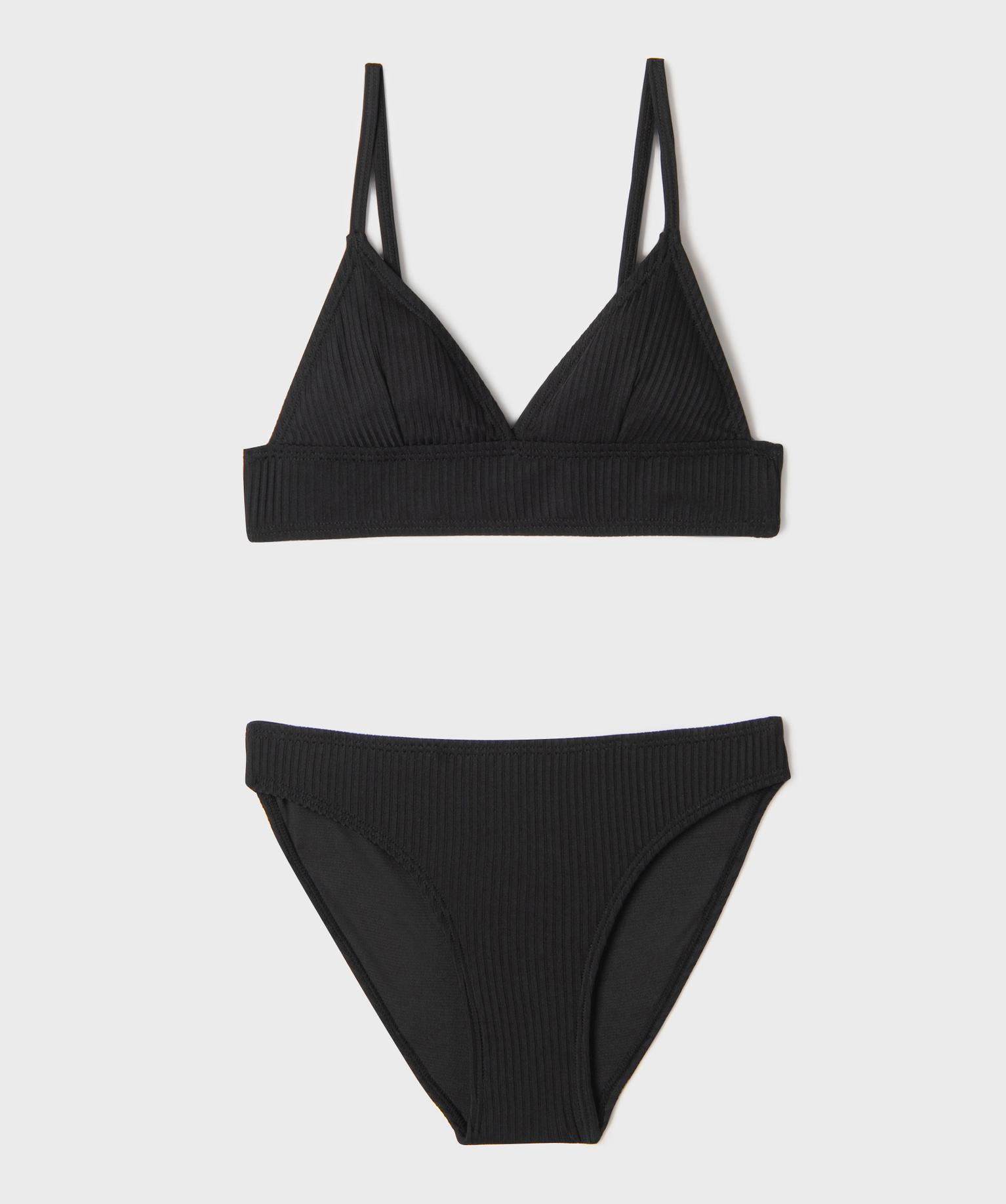 Maillot de bain 2 pièces haut brassière triangle fille noir