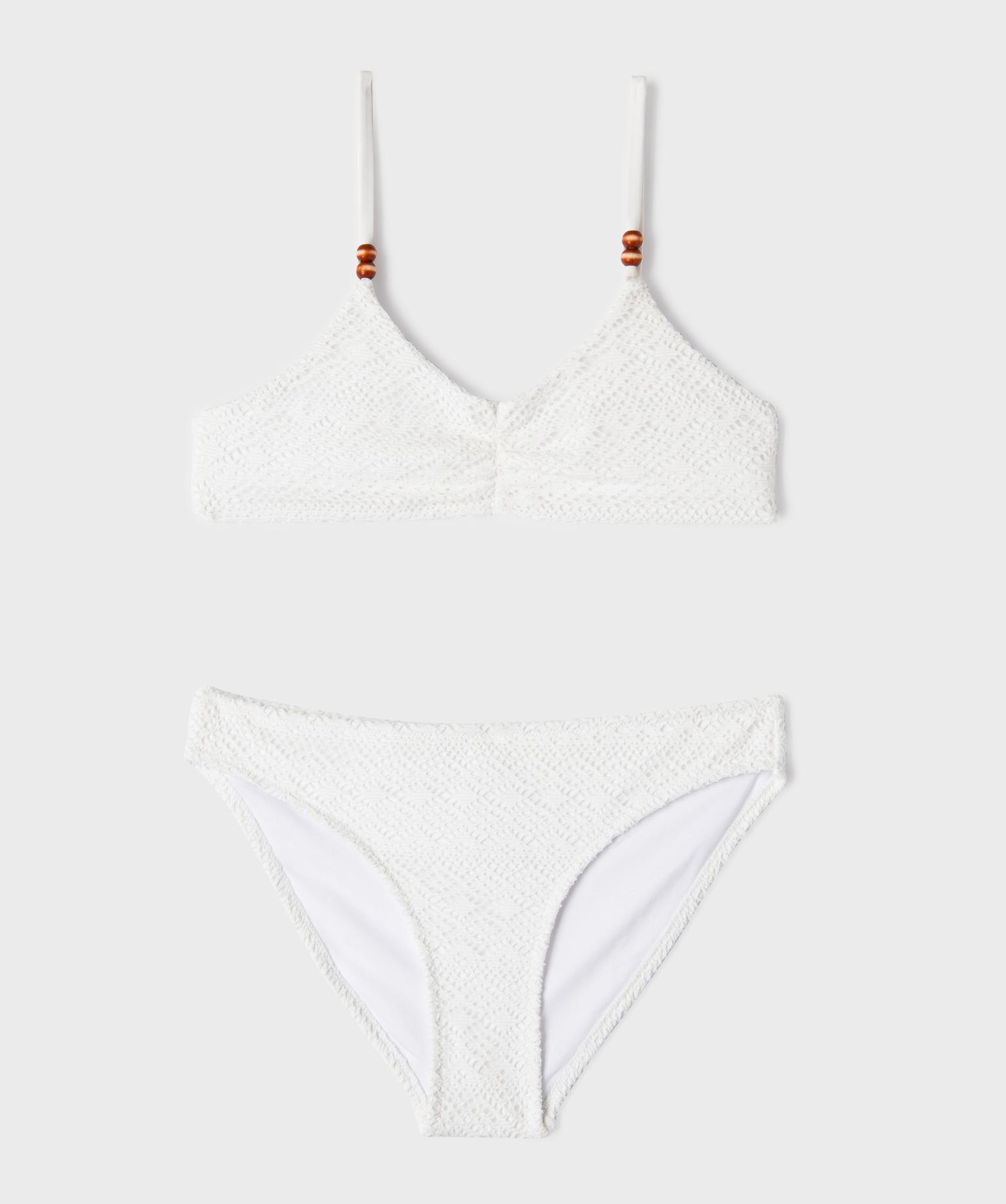 Maillot de bain 2 pièces texturé look bohème fille beige