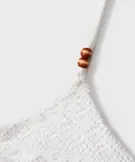 Ce maillot de bain fille deux pièces joue la carte du style bohème avec beaucoup de délicatesse. Le slip de bain à coupe classique s’associe à un haut bandeau légèrement froncé à l’entre-bonnets. Il est doté de fines bretelles ajustables décorées de perles imitation bois. La fermeture se fait par clip au dos. Sa matière extensible ajourée, façon dentelle, lui donne un charme fou tout en restant confortable. Entièrement doublé, le maillot garantit une opacité parfaite et se porte aussi bien pour nager que pour flâner au soleil.