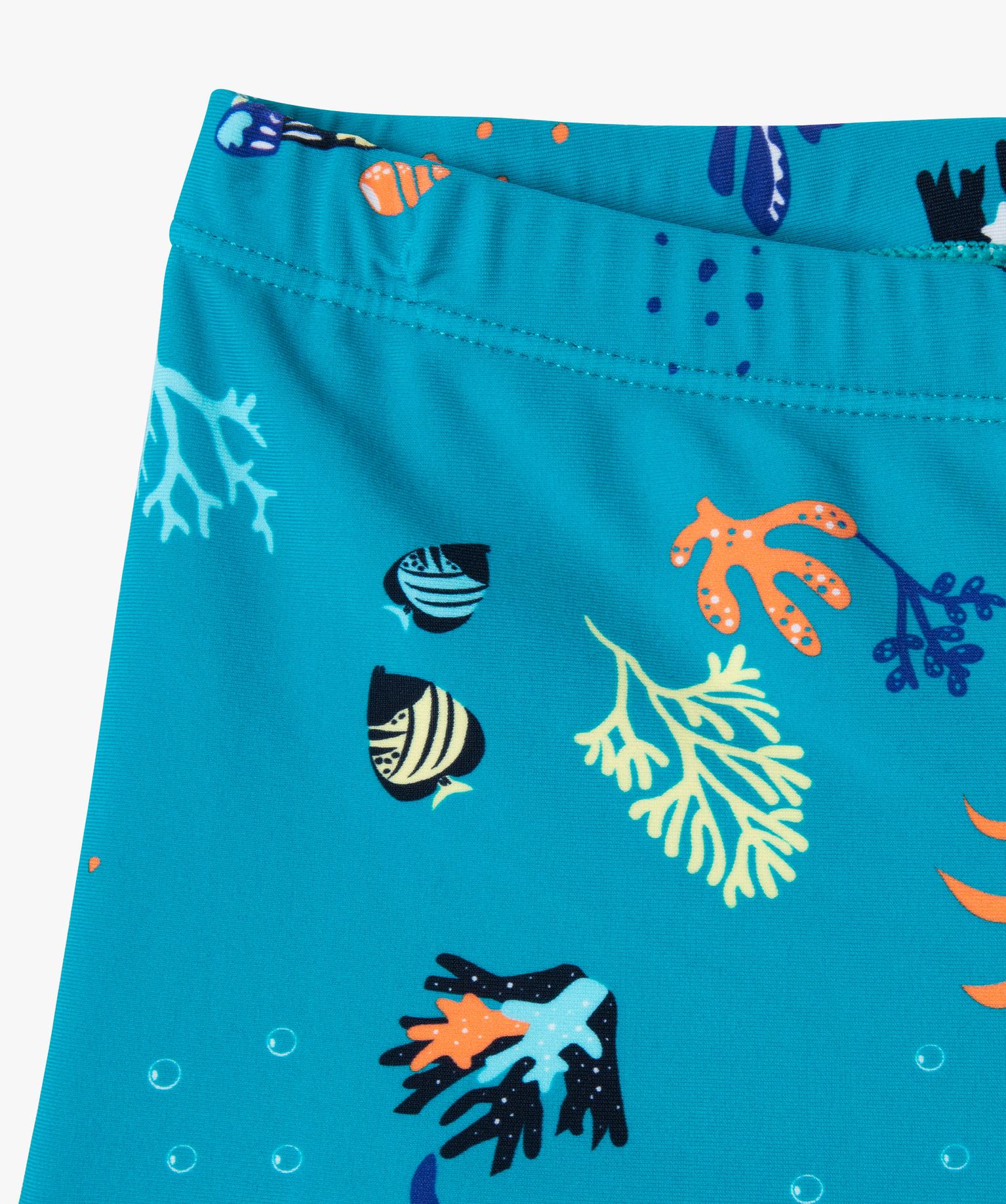 Un adorable maillot de bain garçon décliné dans un coloris pétillant et orné de motifs inspirés des fonds marins. Confectionné dans une maille extensible ultra confortable, ce boxer ce bain est doublé sur la partie avant et possède une taille élastique ajustable par lacet coulissant. Le must ? Il est réalisé à partir de matières recyclées !